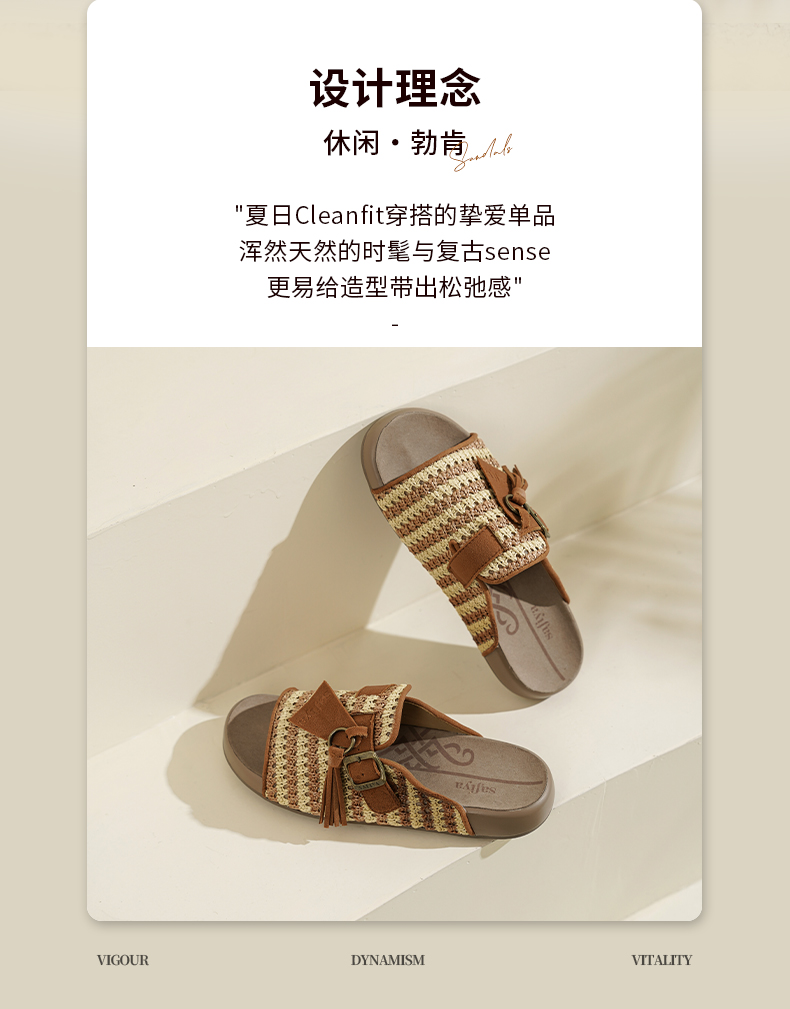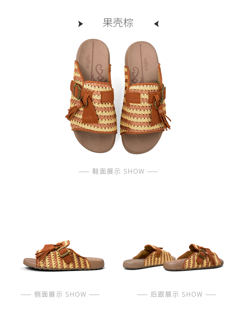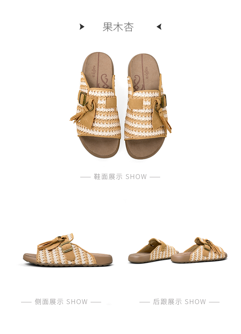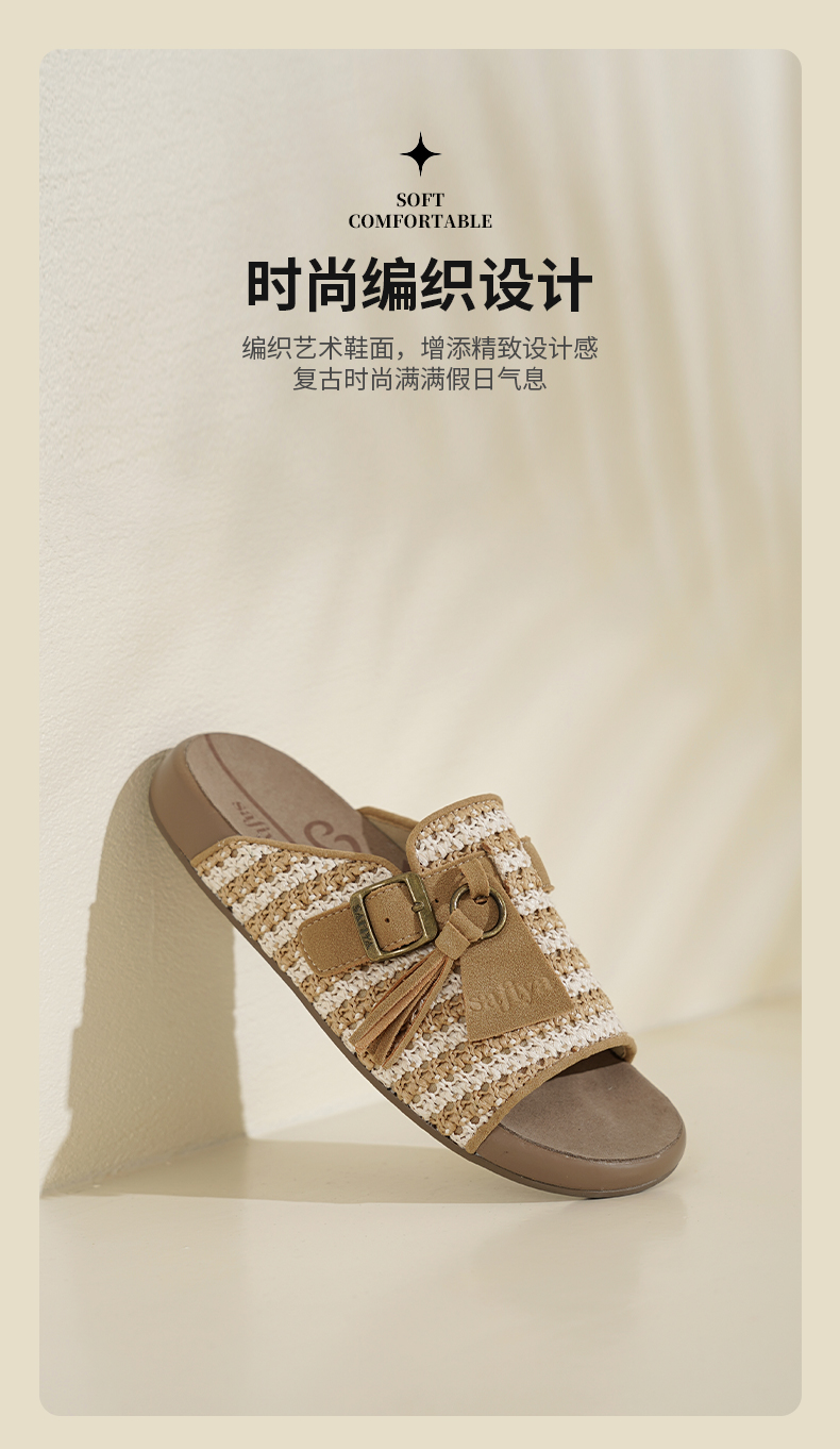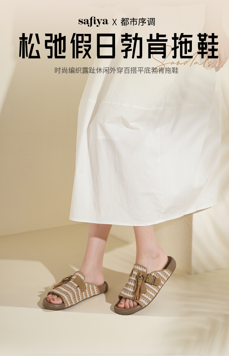 预售7天|Safiya/索菲娅2025时尚编织露趾休闲外穿百搭平底勃肯拖鞋SFD2110401