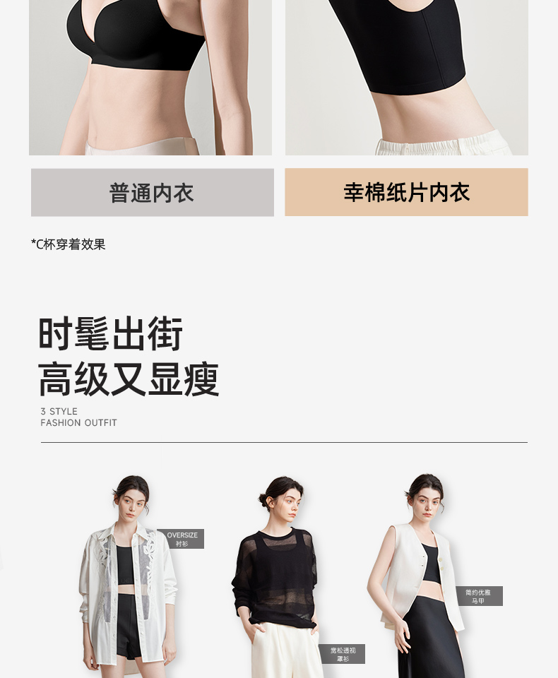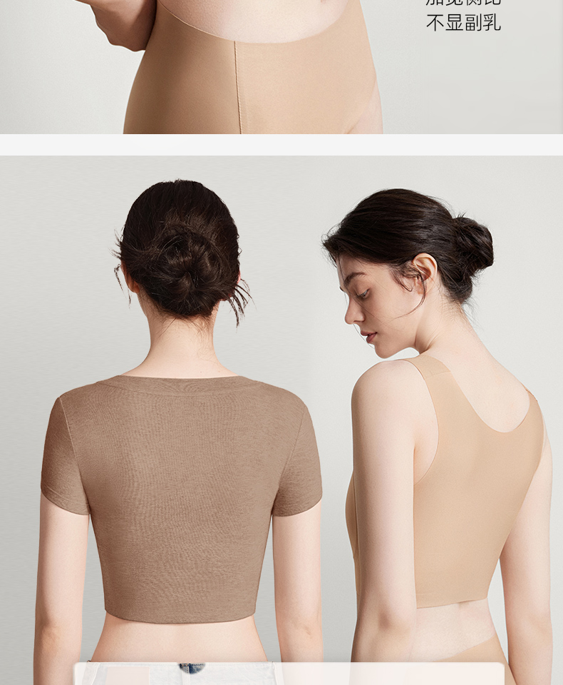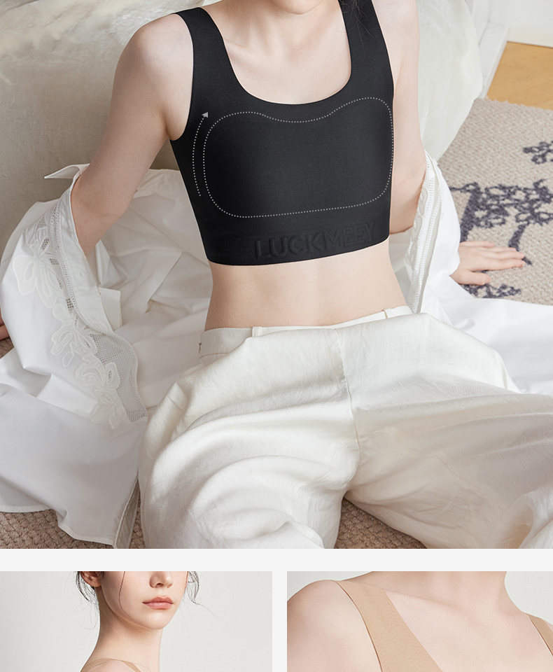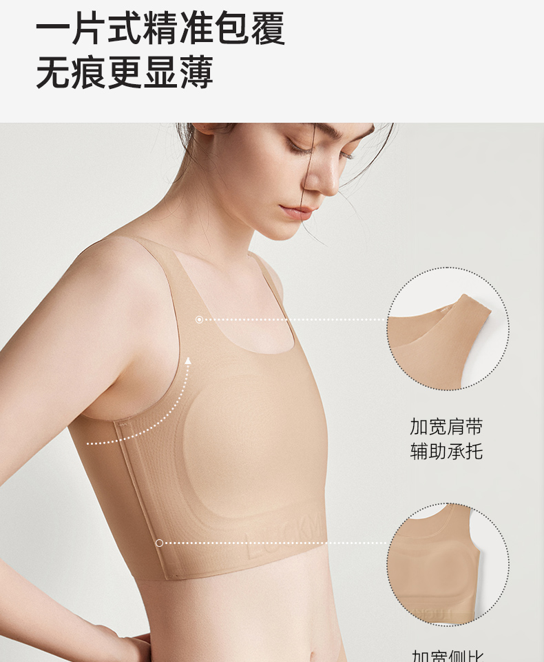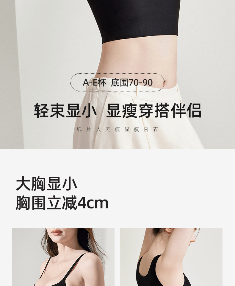 【幸棉】纸片内衣女胸大显小收副乳防下垂背心式大码显瘦无痕隐形文胸24W101118