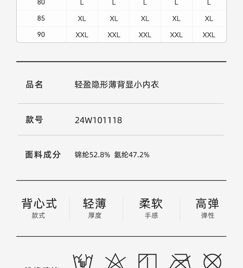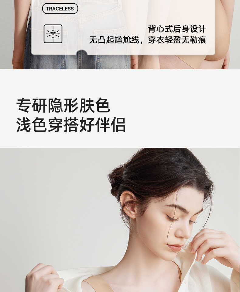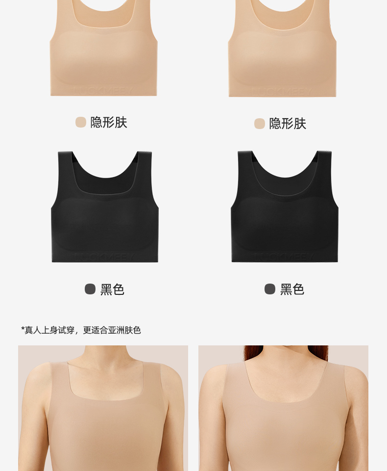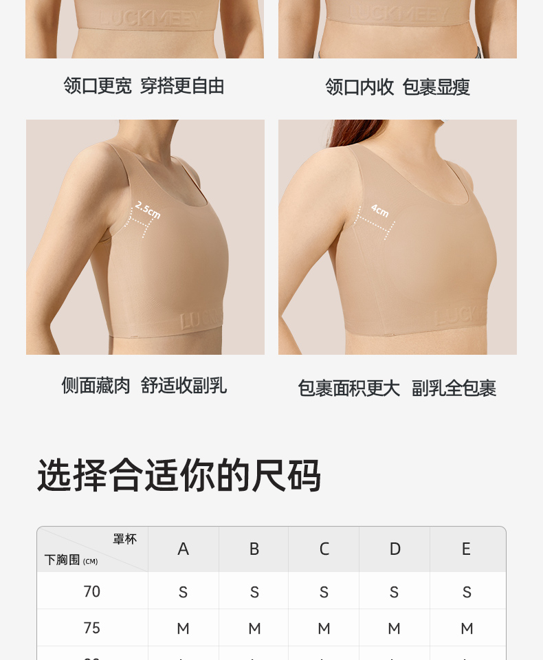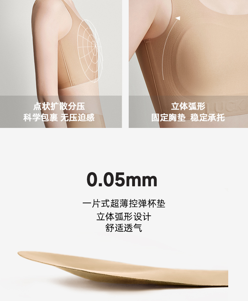 【幸棉】纸片内衣女胸大显小收副乳防下垂背心式大码显瘦无痕隐形文胸24W101118