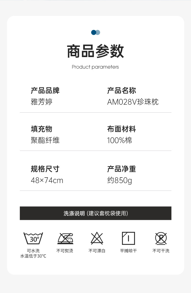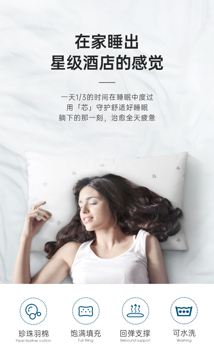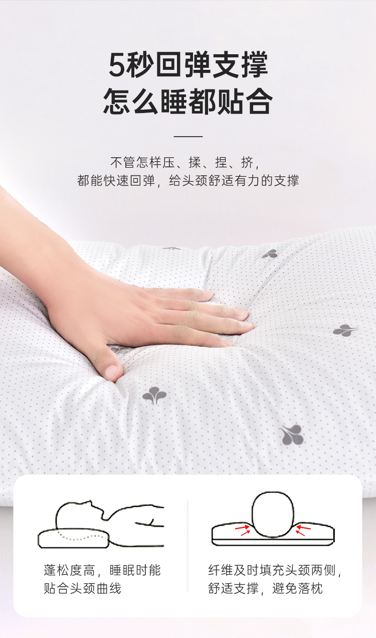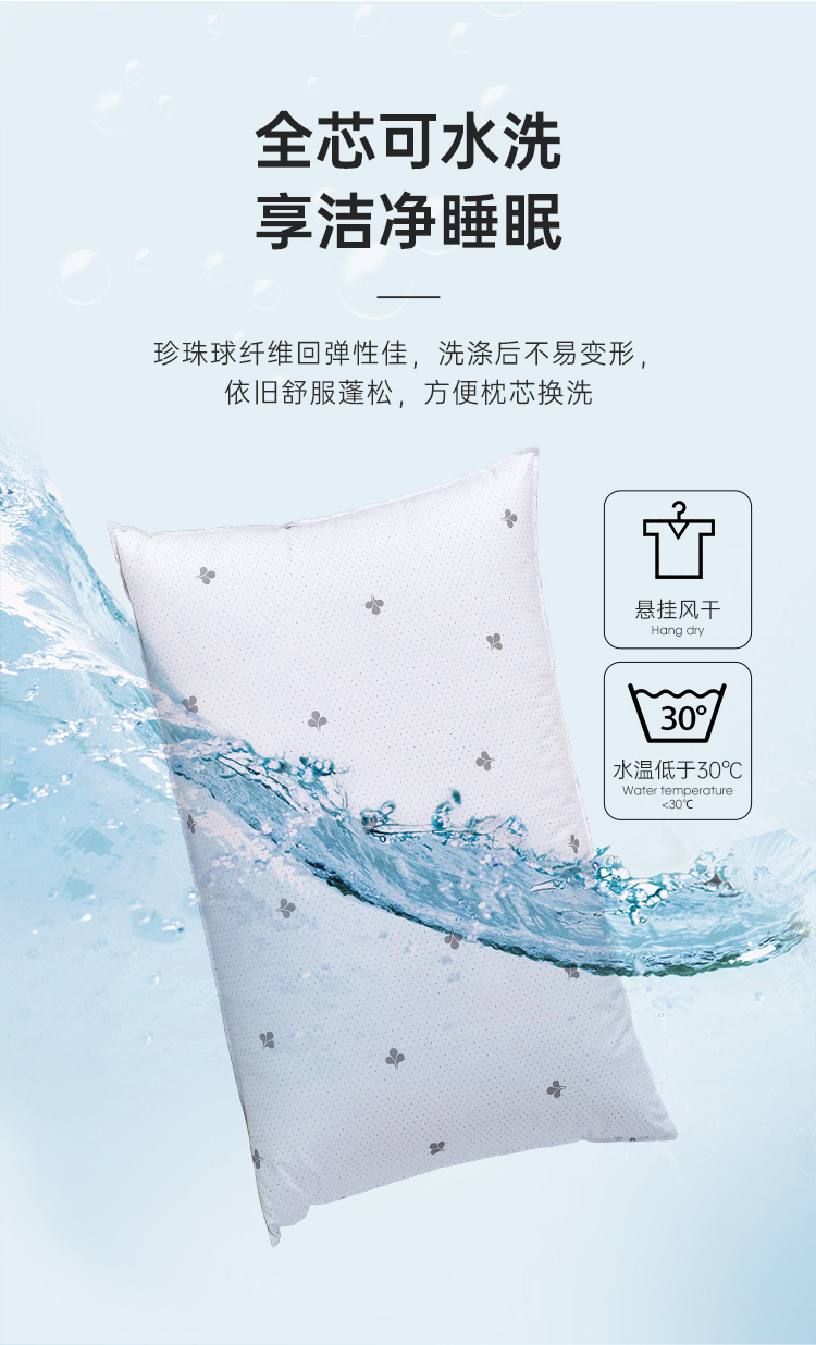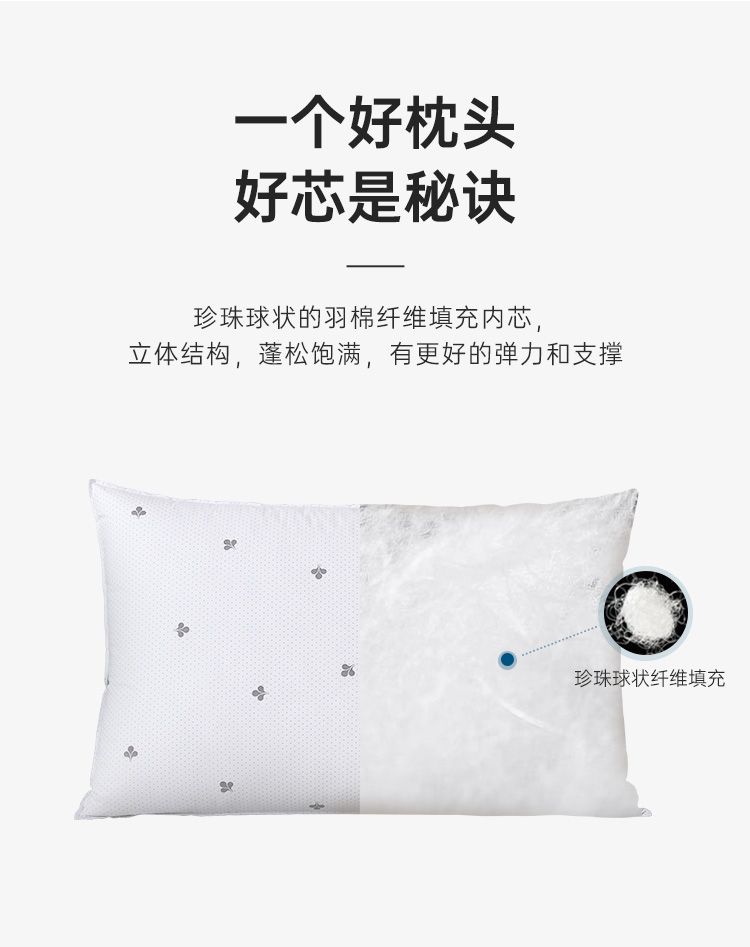 雅芳婷高弹珍珠纤维枕头枕芯 成人枕 枕芯护颈枕 透气单人珍珠枕