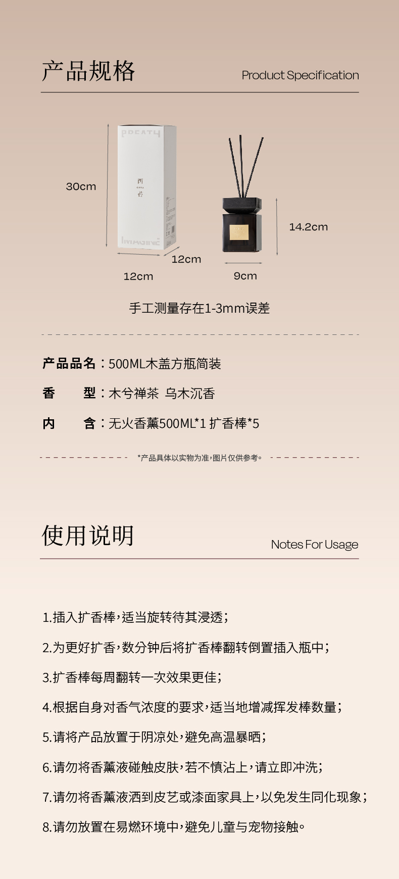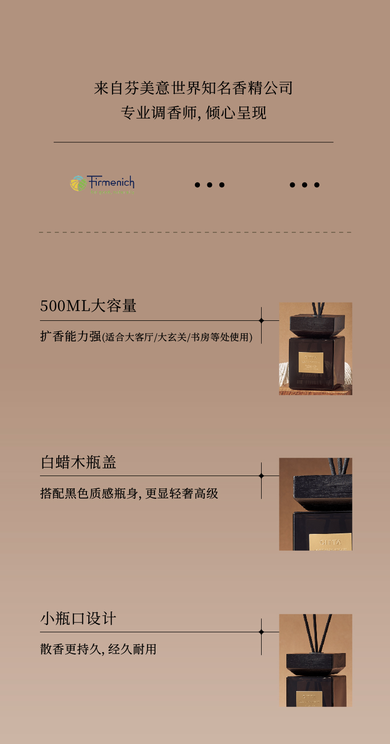 CITTA西苔 香薰精油香氛500ml 木盖方瓶 进口香料 香氛酒店家用 72小时发货