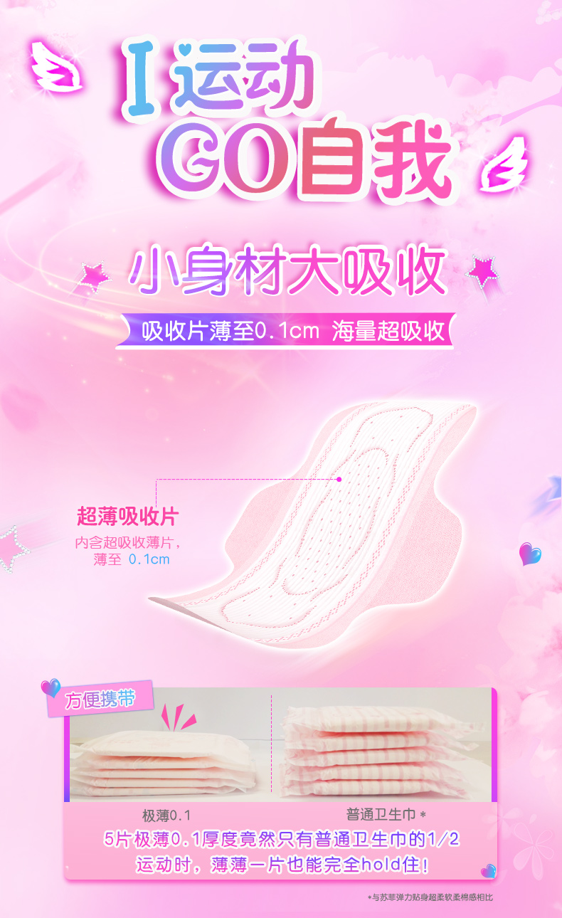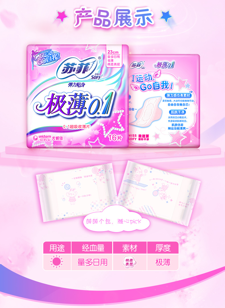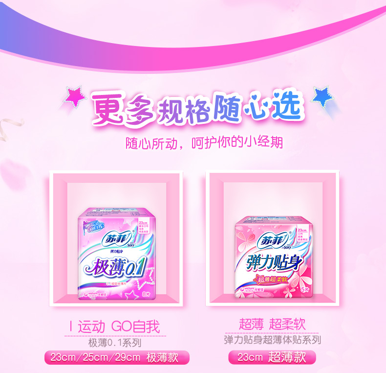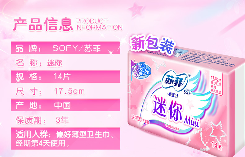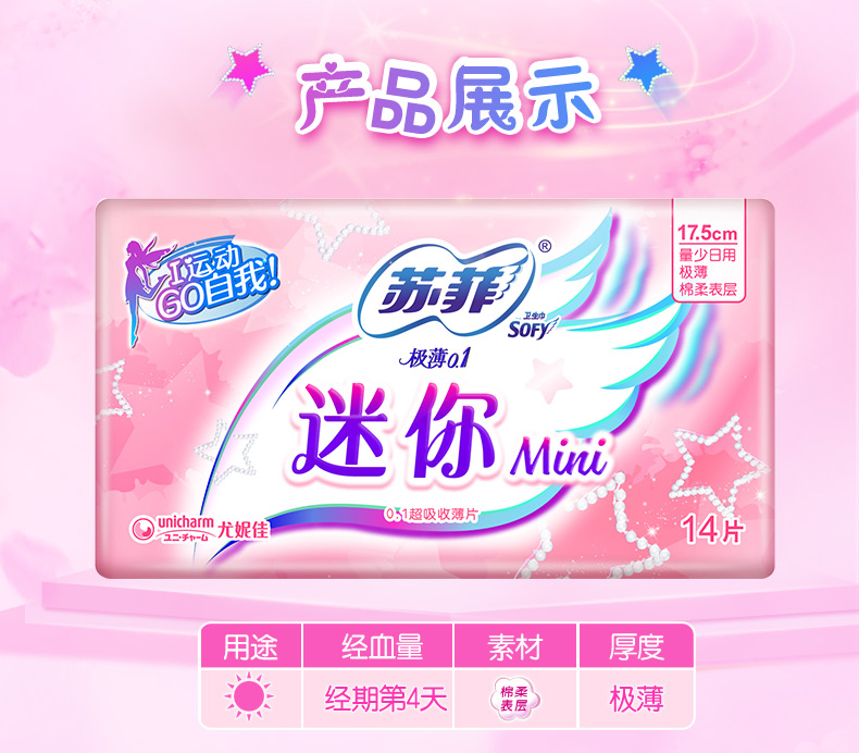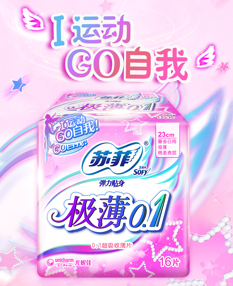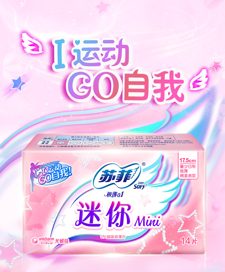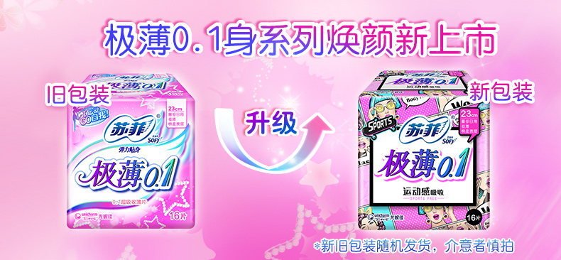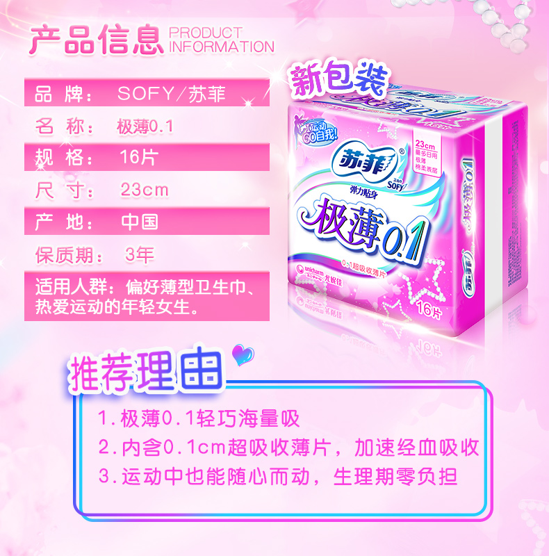 苏菲极薄日用组合 苏菲弹力贴身极薄0.1 16片装*3包+苏菲迷你护翼型卫生巾14片装*1包 共52片