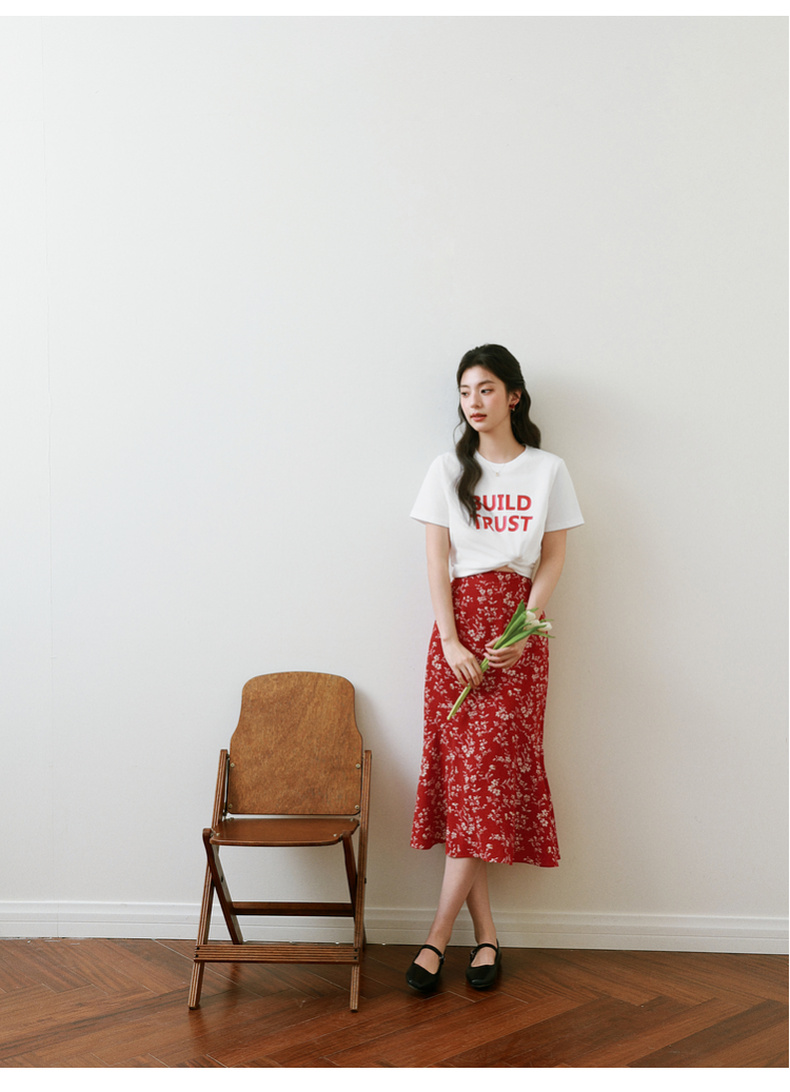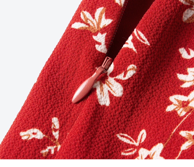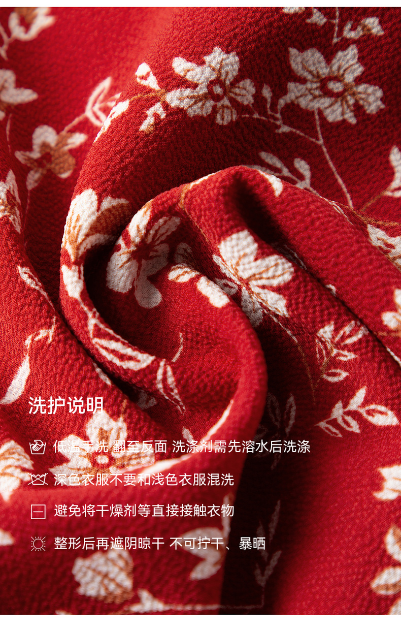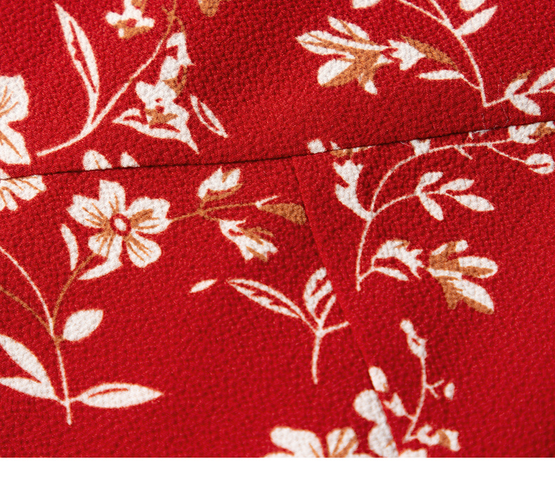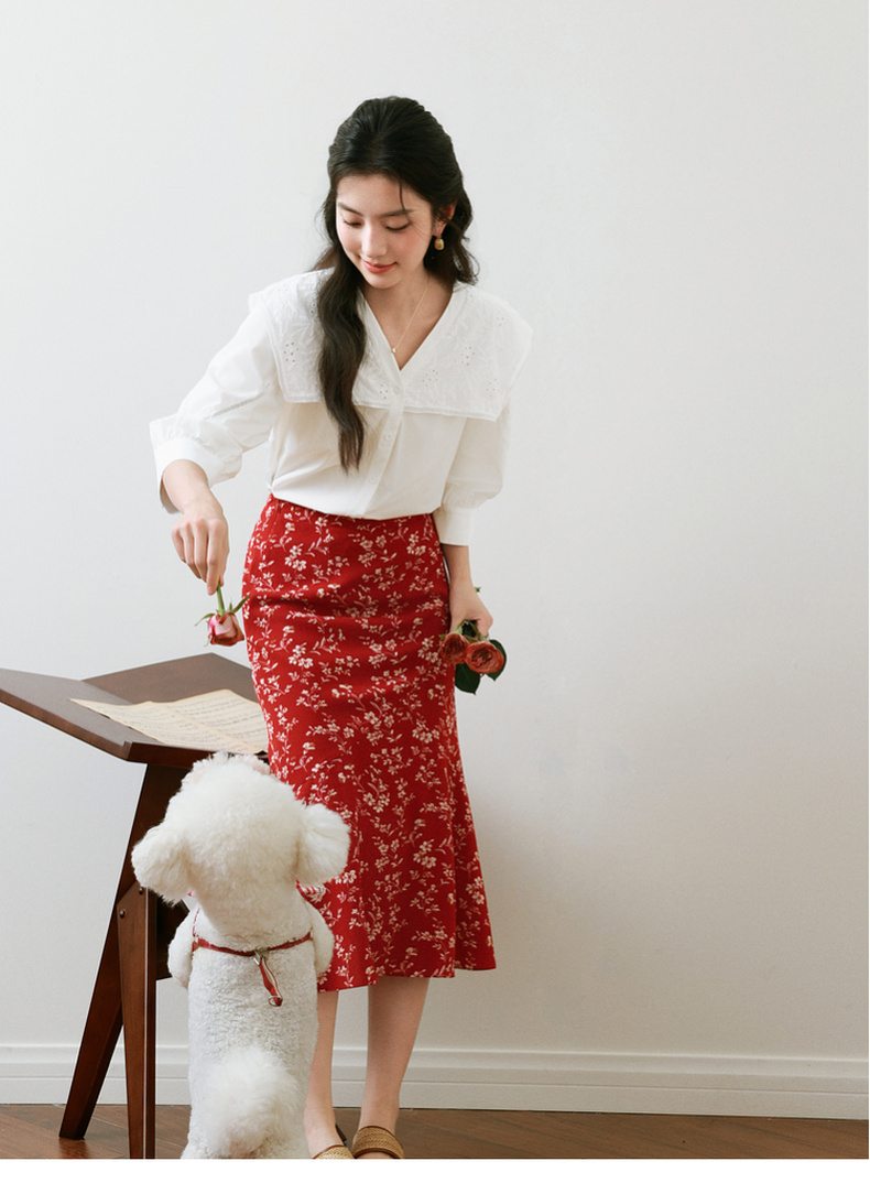 【严选】诗凡黎法式红色碎花半身裙2025夏新款高腰A字浪漫荷叶边鱼尾裙7G4240171