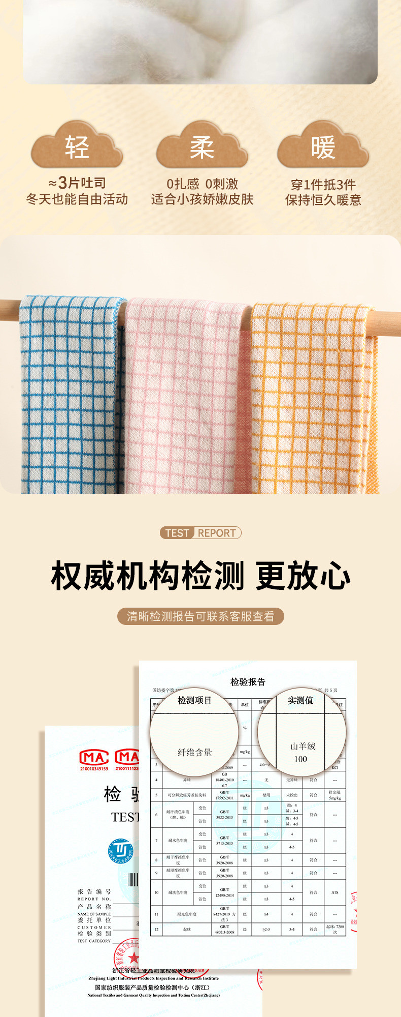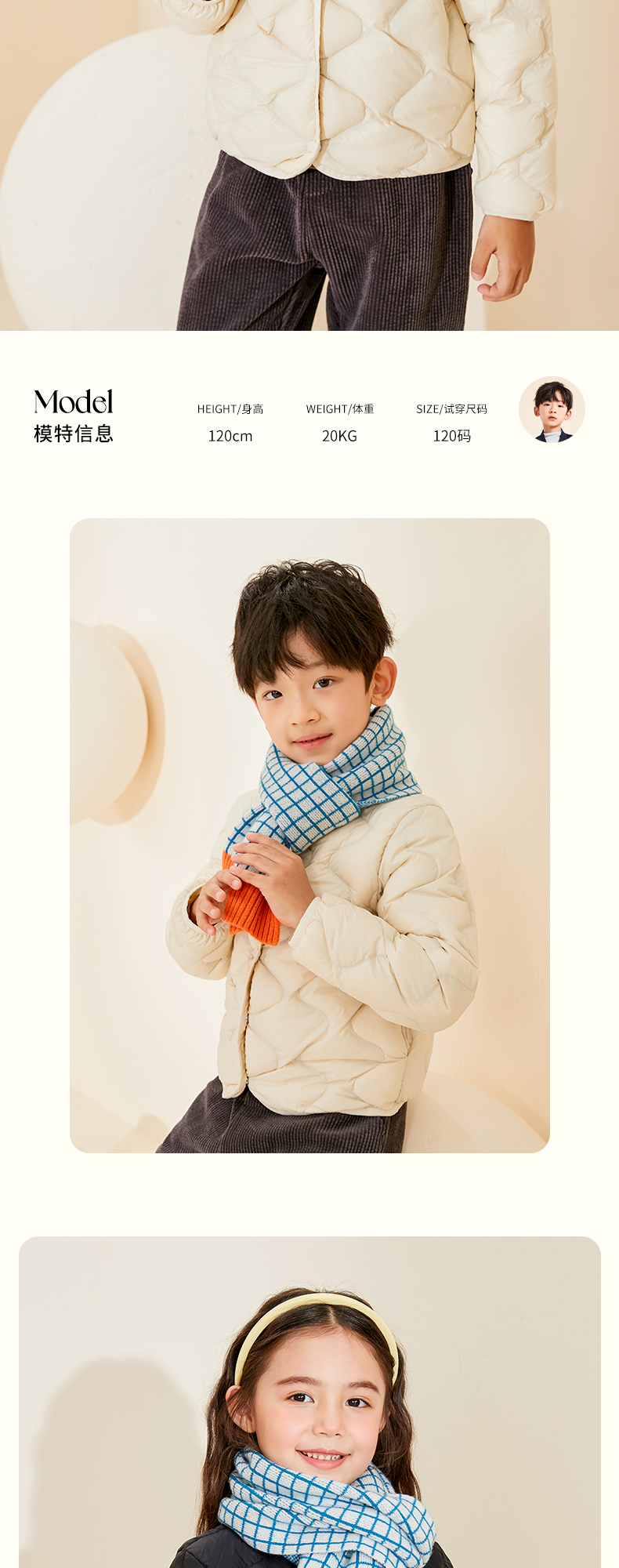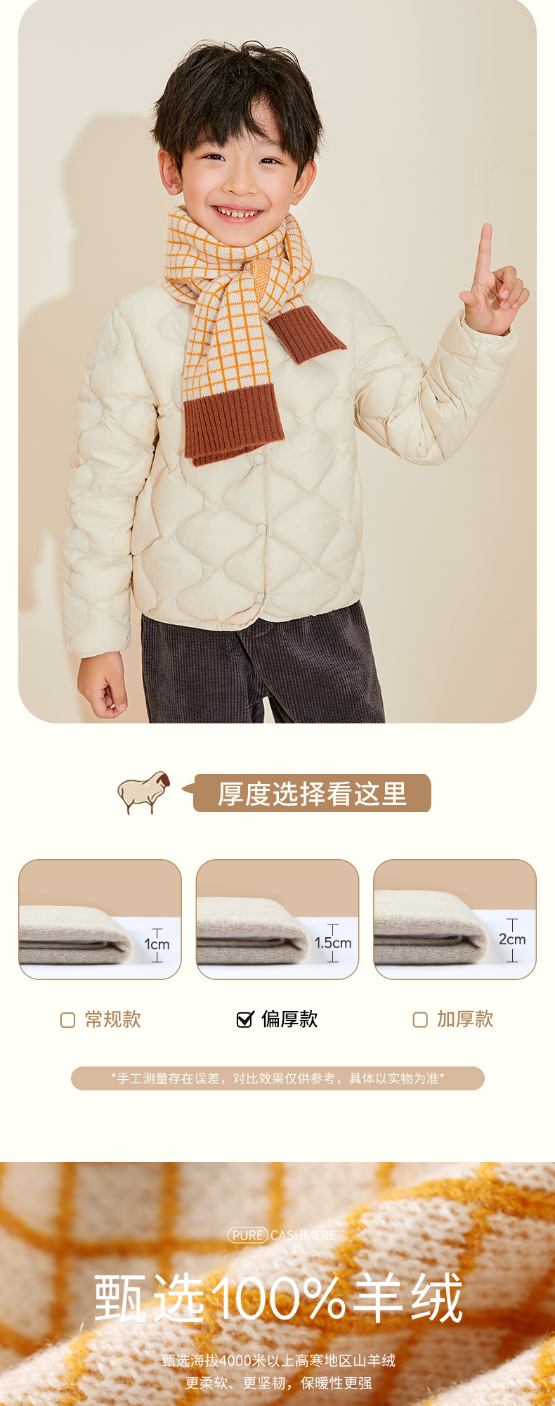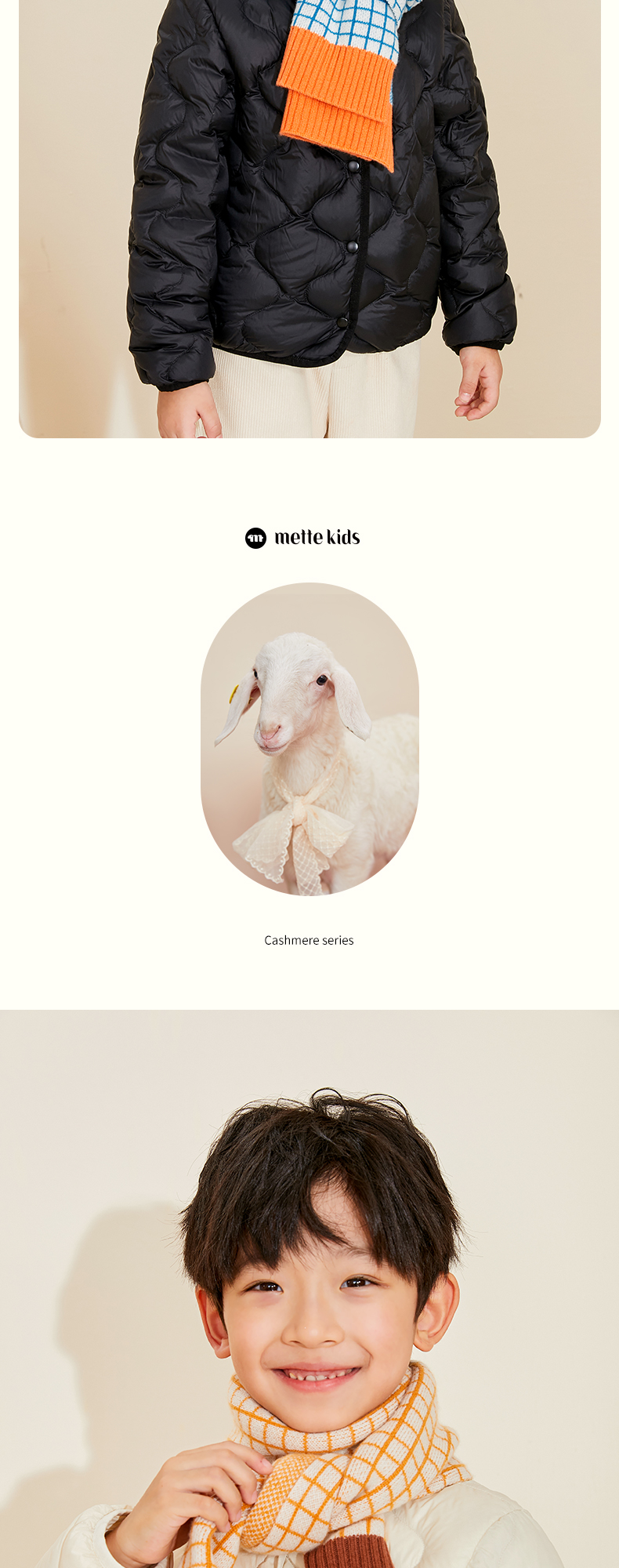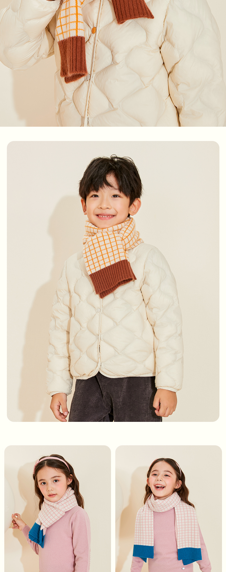 mettekids儿童围巾纯羊绒男童女童新款格子针织秋冬季保暖围脖