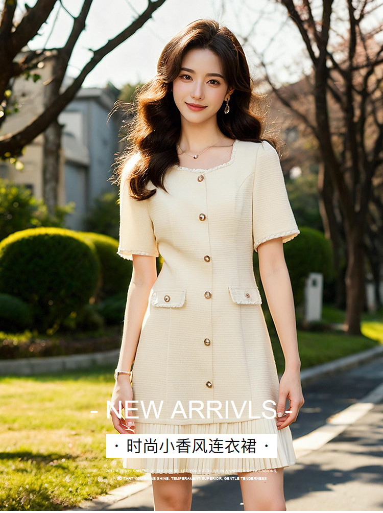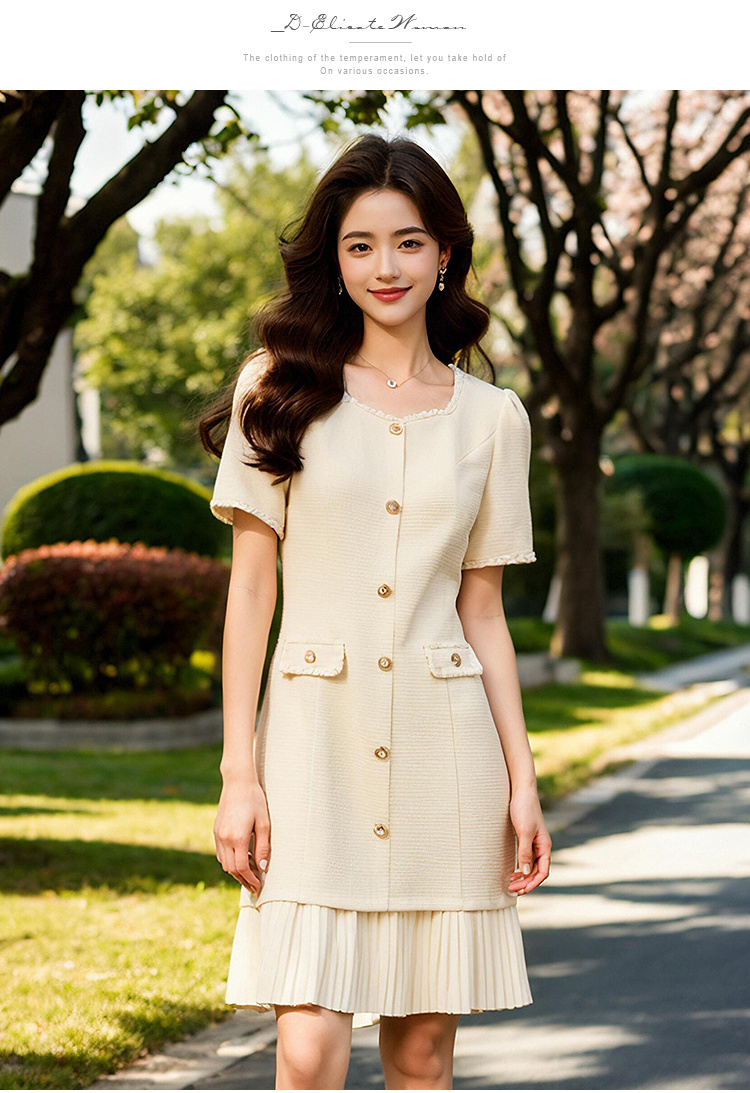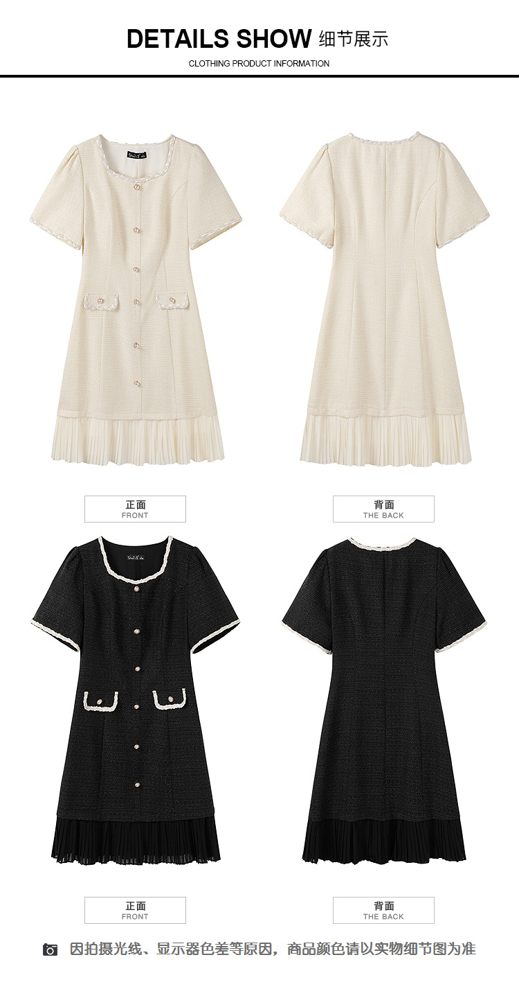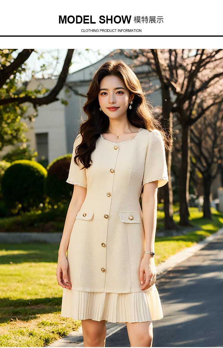 奢姿大码女装2025夏季纽扣装饰时尚连衣裙胖妹妹百褶小香风裙子9952890352