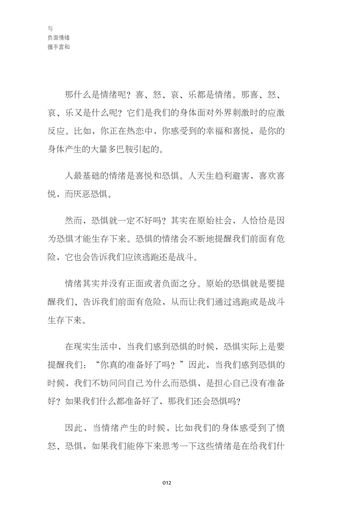 情绪其实并没有正面或者负面之分。原始的恐惧就是要提醒我们、告诉我们前面有危险,从而让我们通过逃跑或是战斗生存下来。