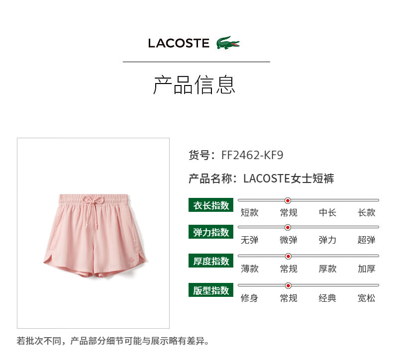 Lacoste法国鳄鱼女士新款时尚舒适百搭短裤FF2462-10