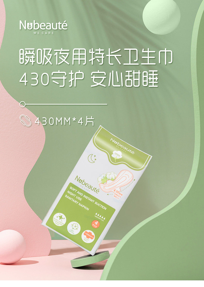 纽派妮 棉柔瞬吸晚用卫生巾430MM*4片