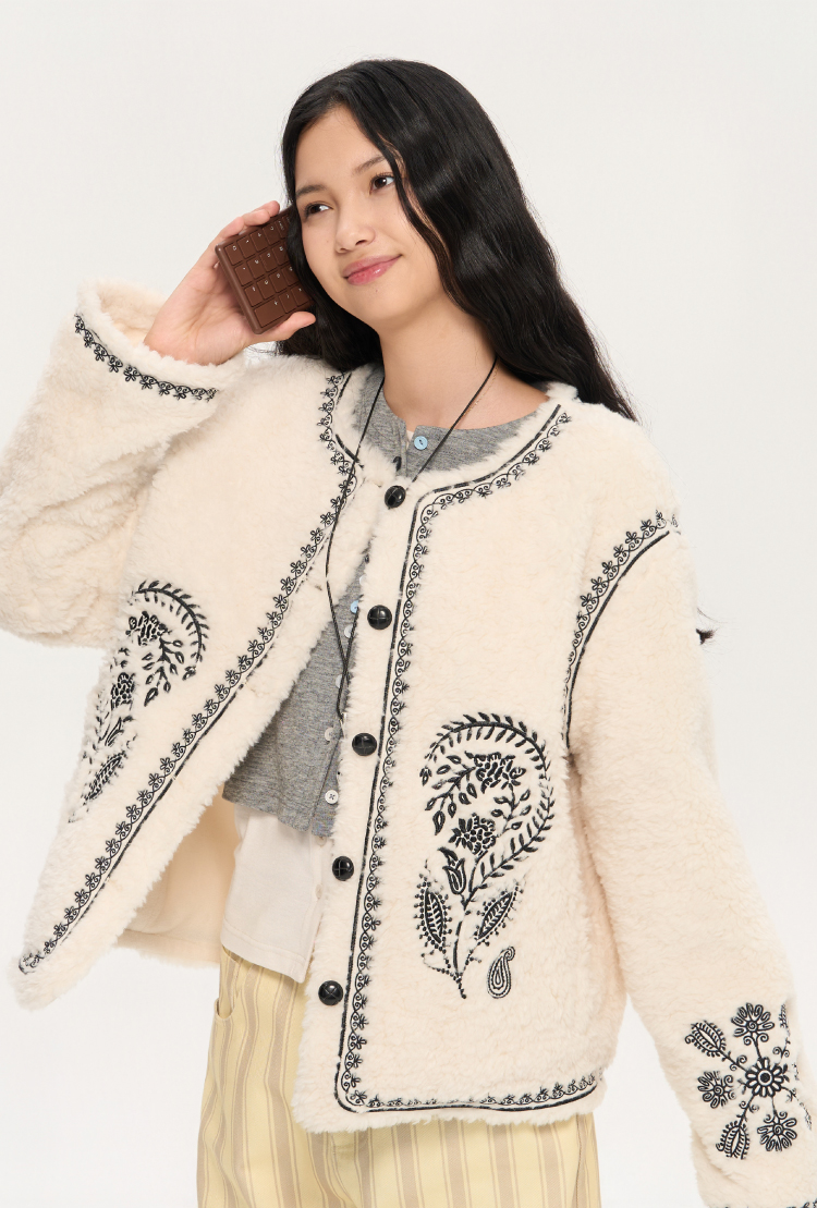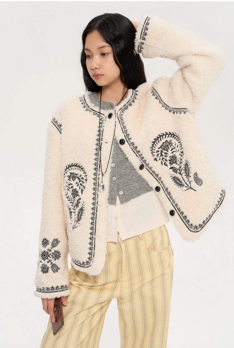 heris/H53110/重工游牧腰果花刺绣宽松圆领短款外套