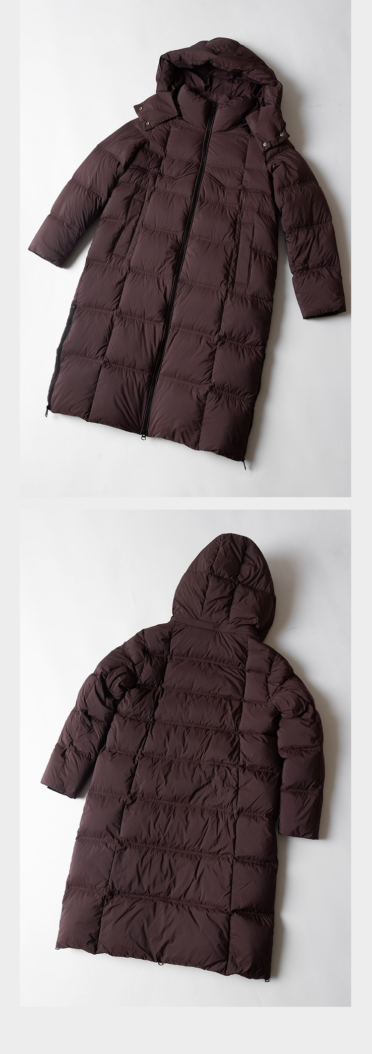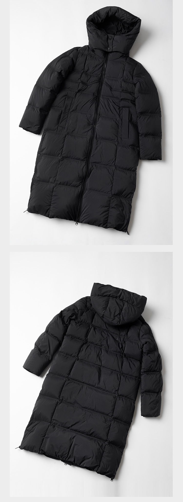 【现货】新国标95白鸭绒纯色连帽中长款羽绒服
