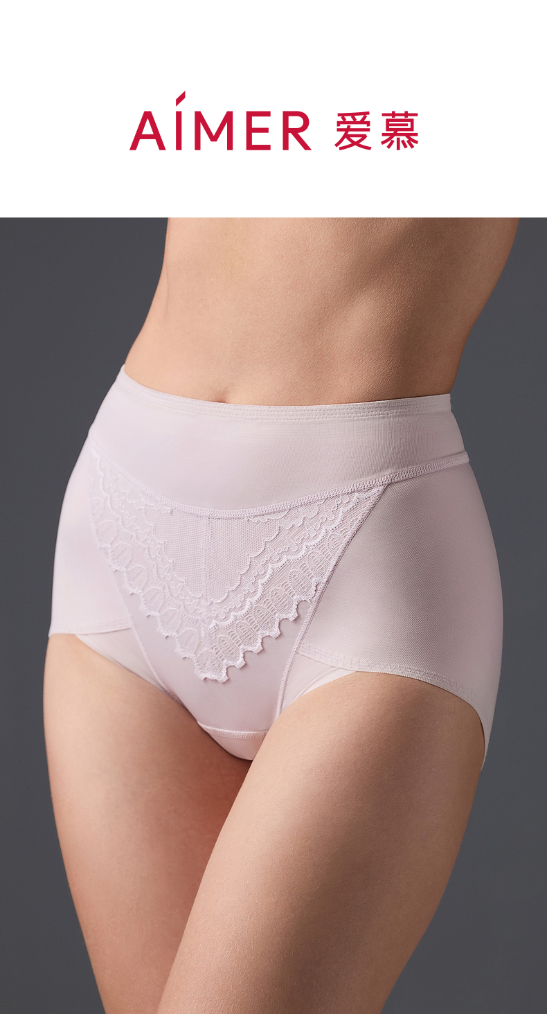 爱慕24AW简塑内裤女棉质底裆性感蕾丝收腹高腰平角塑裤
