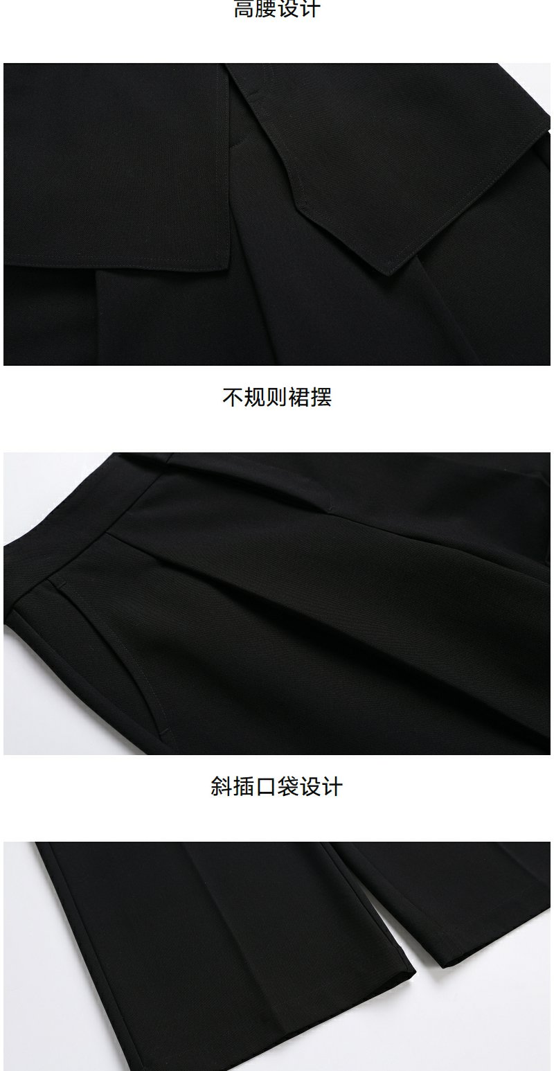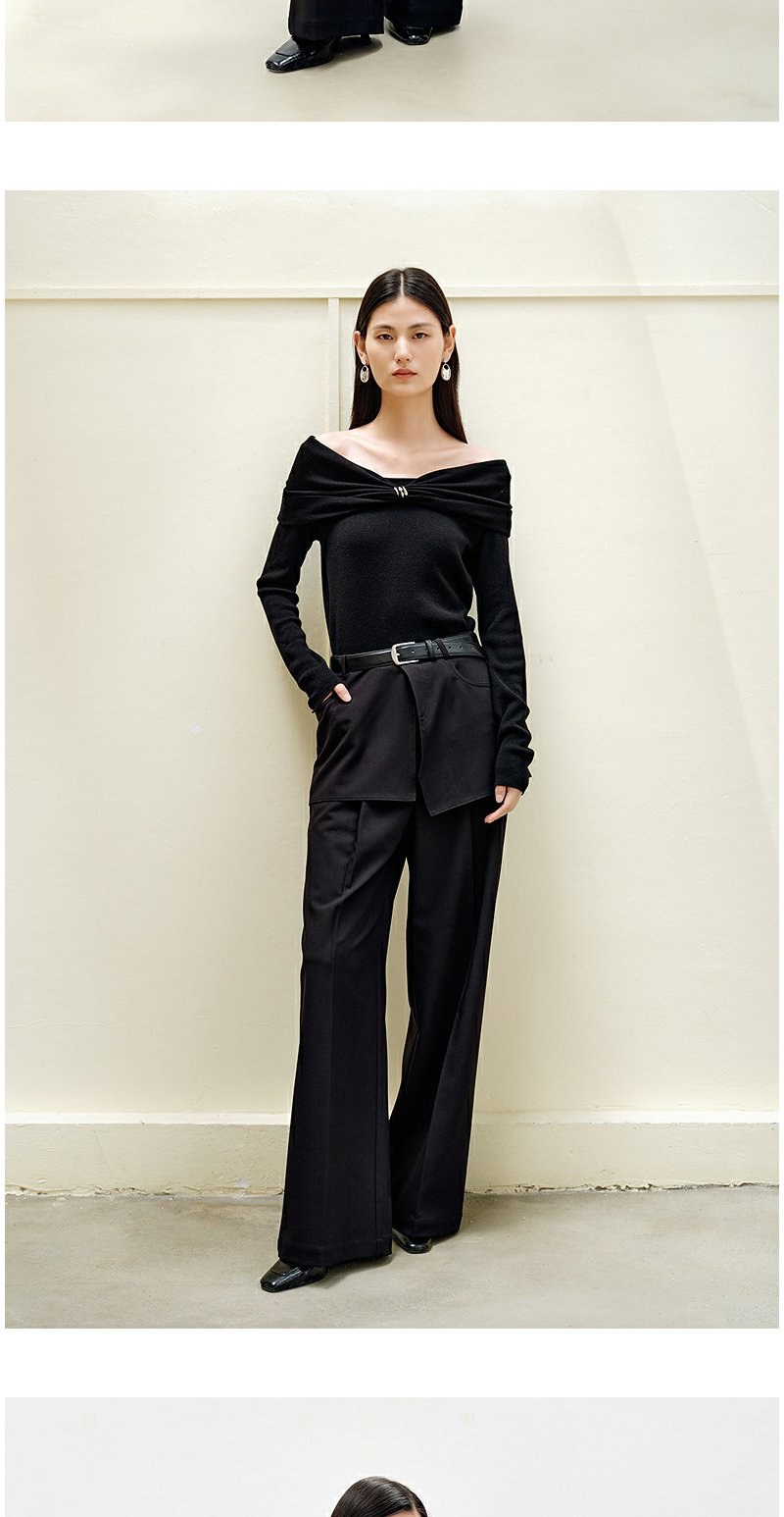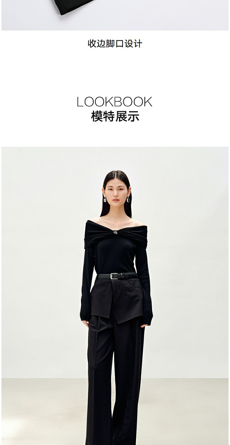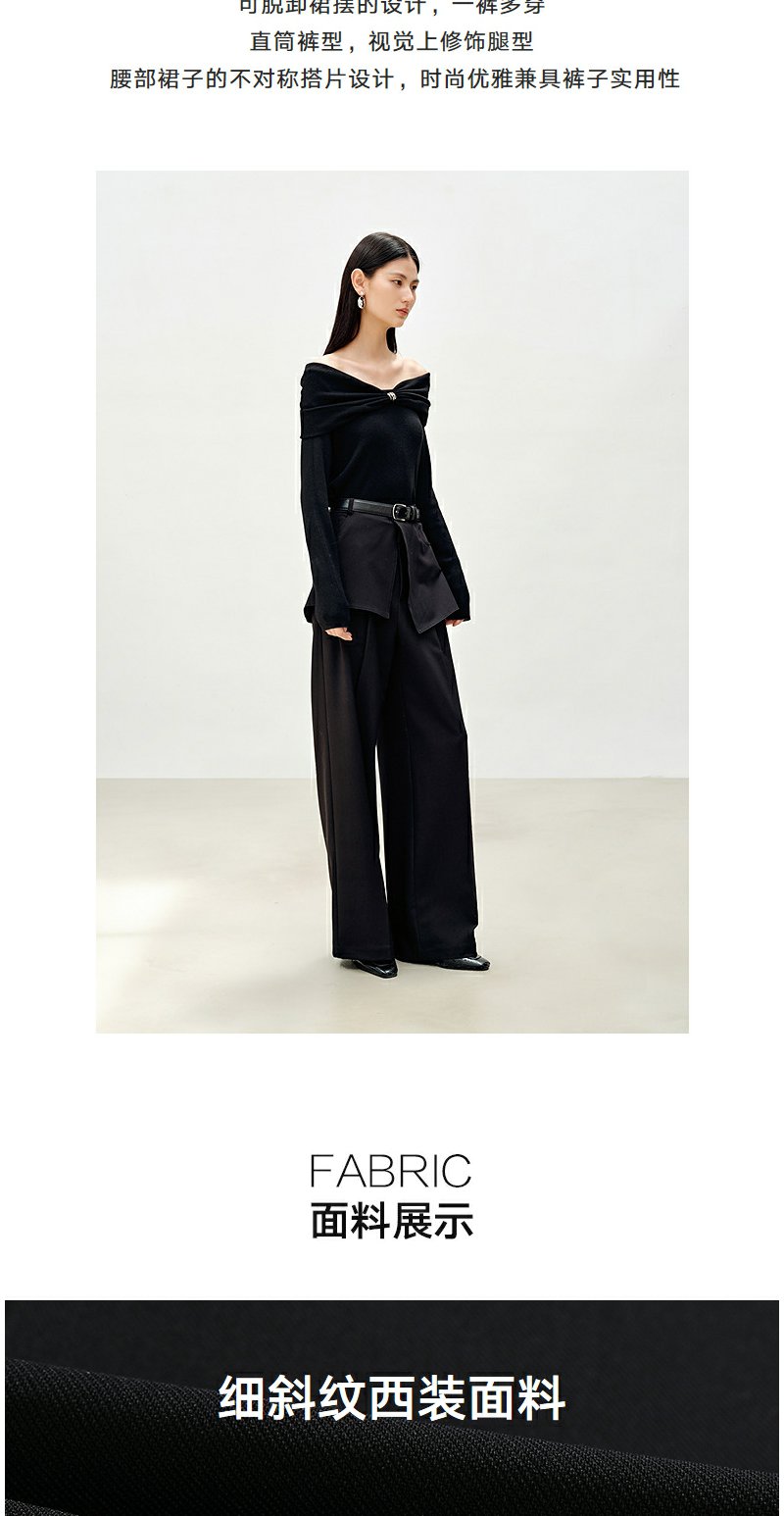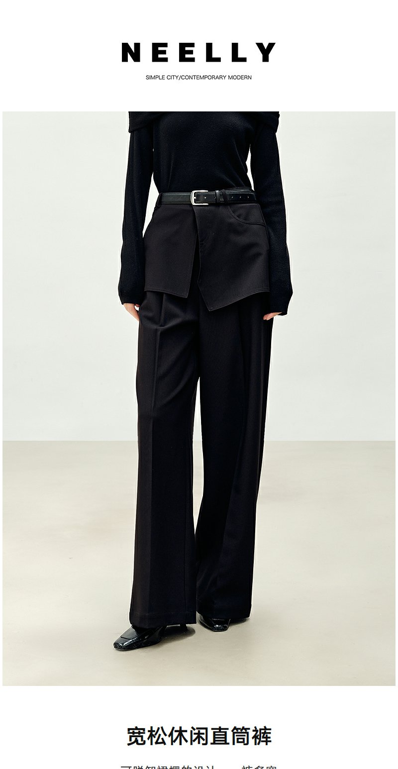 NEELLY纳俪商场同款秋季新款简约宽松阔腿裤女不规则搭片直筒长裤N25083H01130