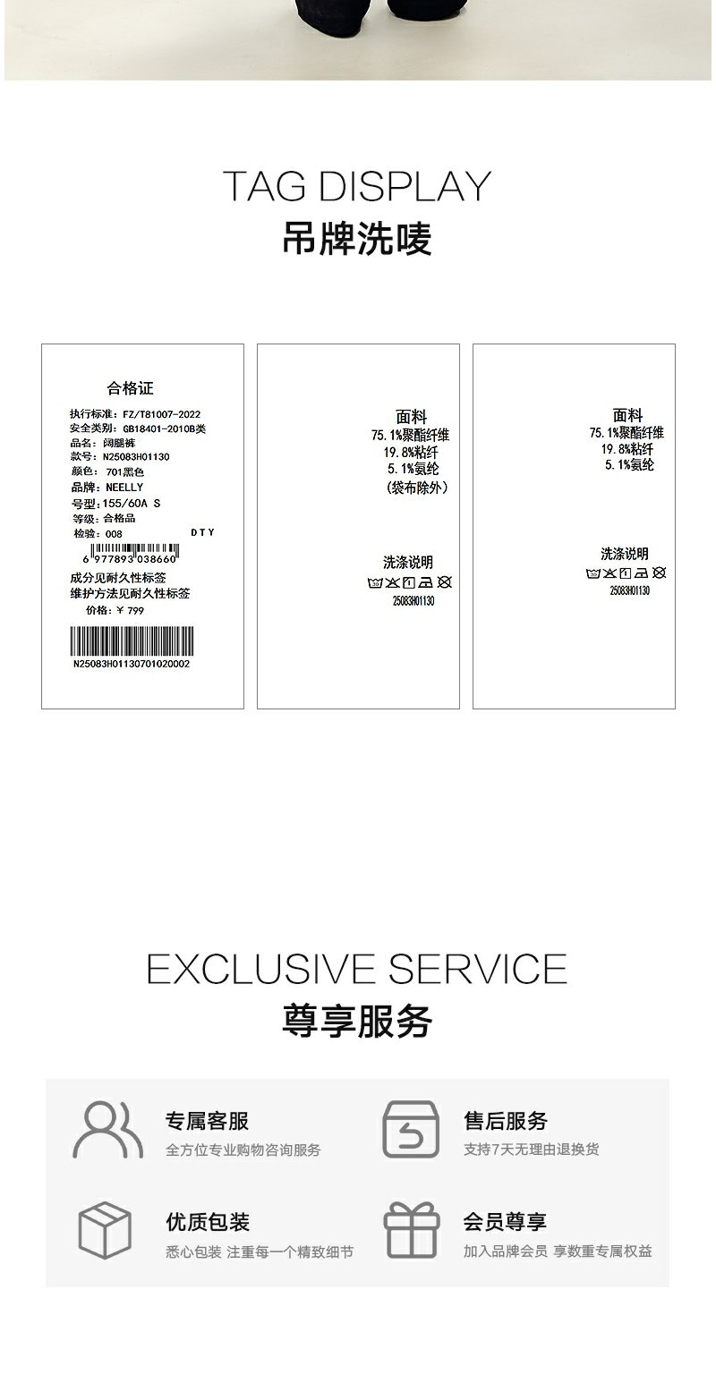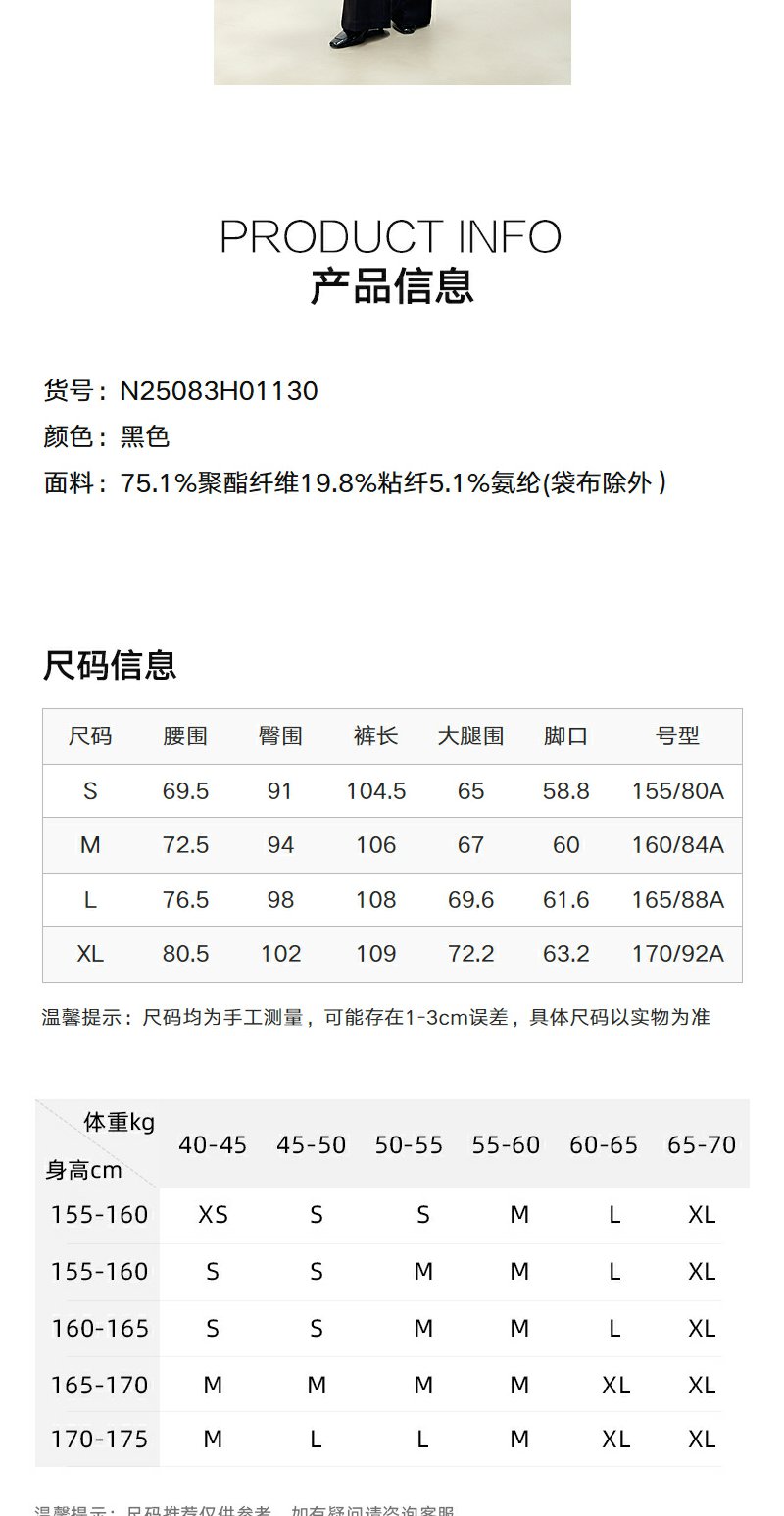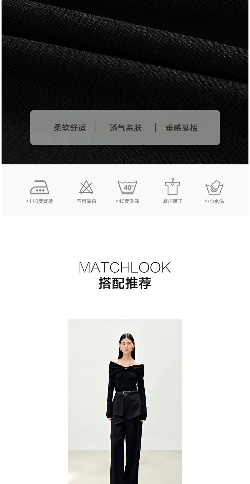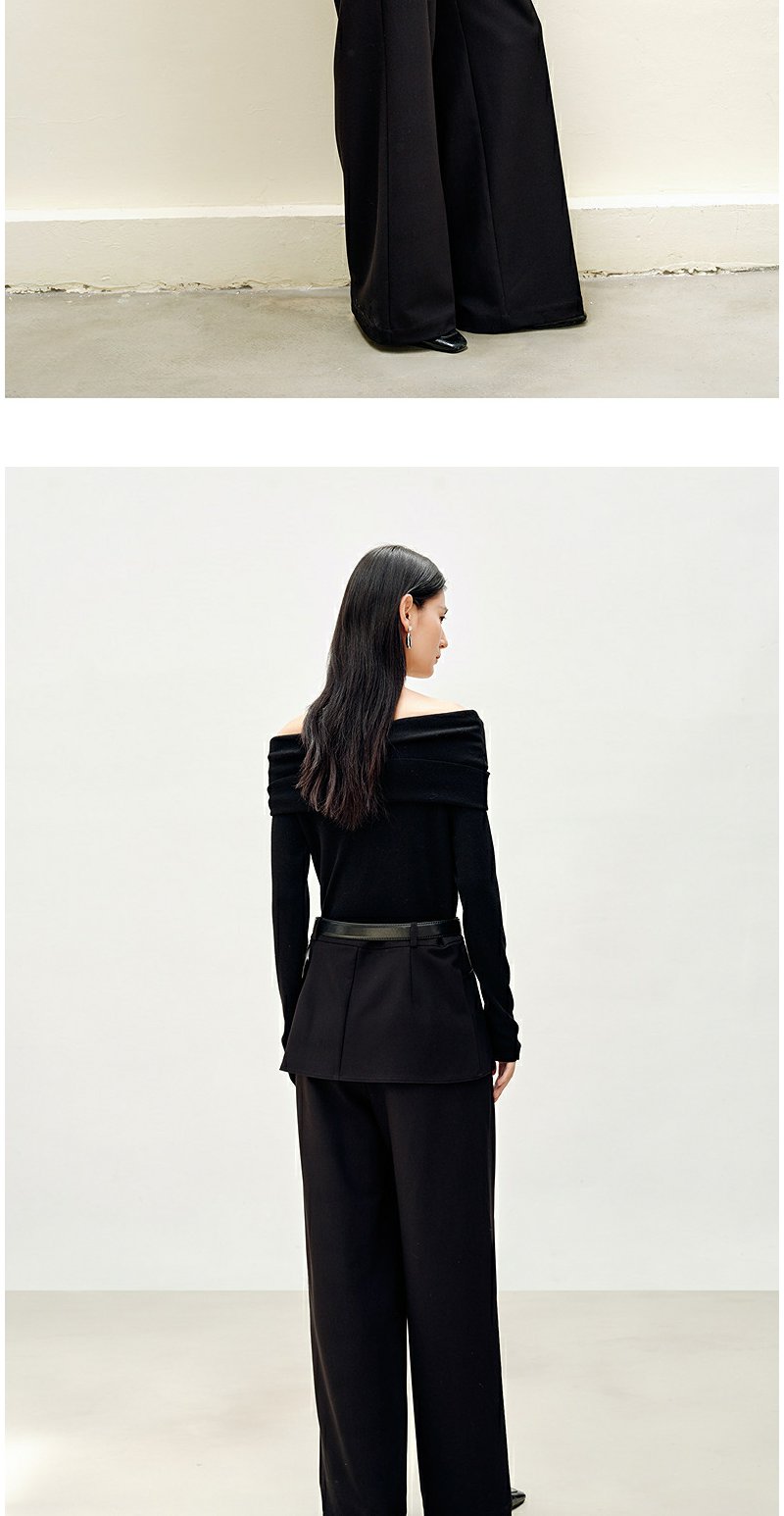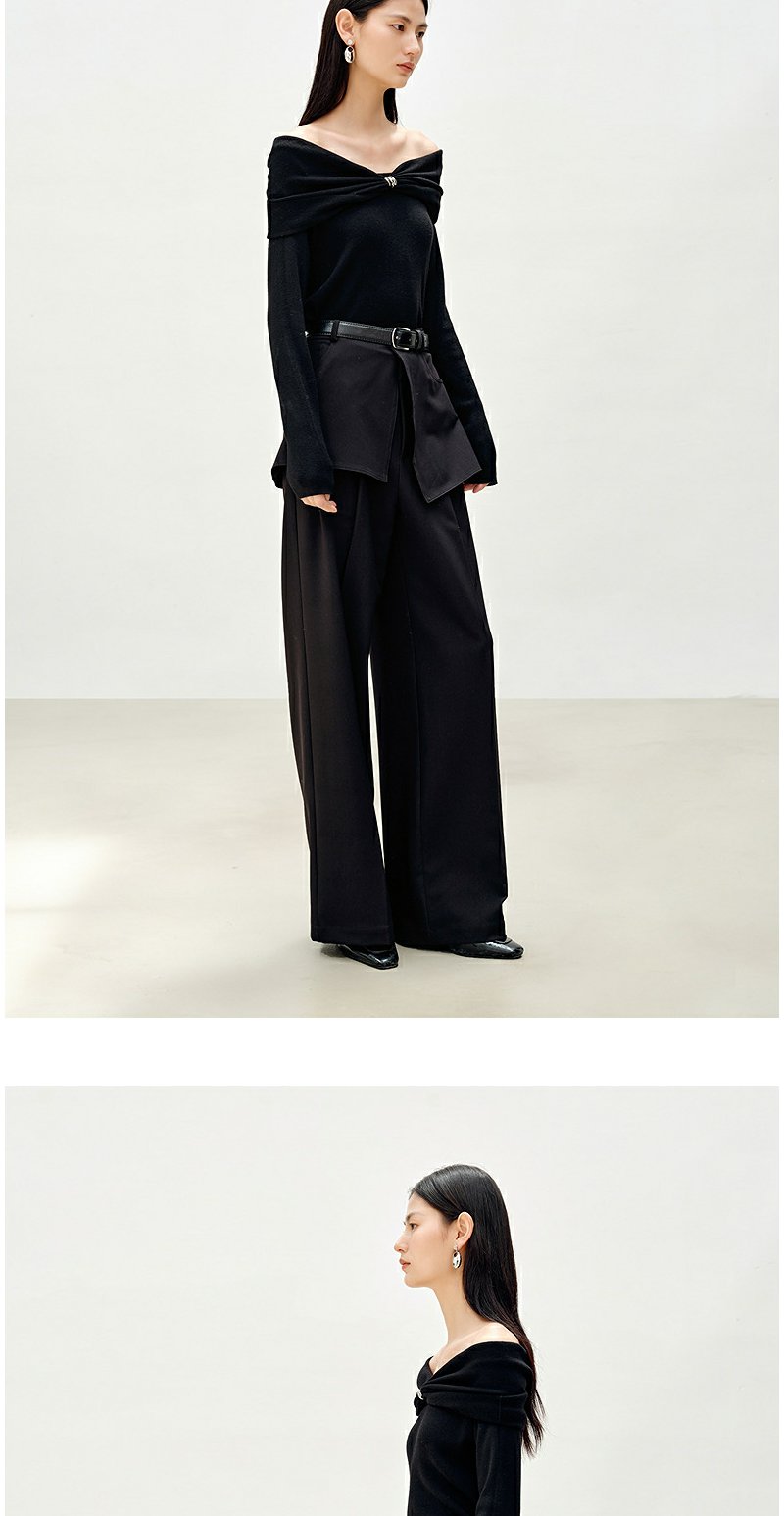 NEELLY纳俪商场同款秋季新款简约宽松阔腿裤女不规则搭片直筒长裤N25083H01130