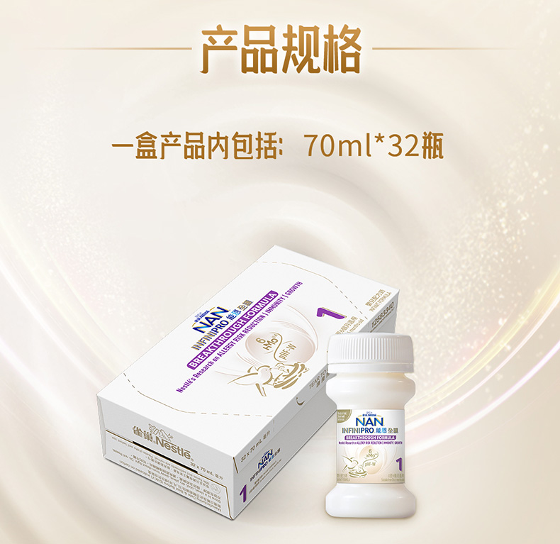 【跨境商品】(铝箔泡沫箱+阻温袋+冰袋顺丰京东义乌仓发)能恩全护水奶1段32瓶*70ml(配一次性奶嘴32个)(效期26年4月)| 报关后不支持退换货含税