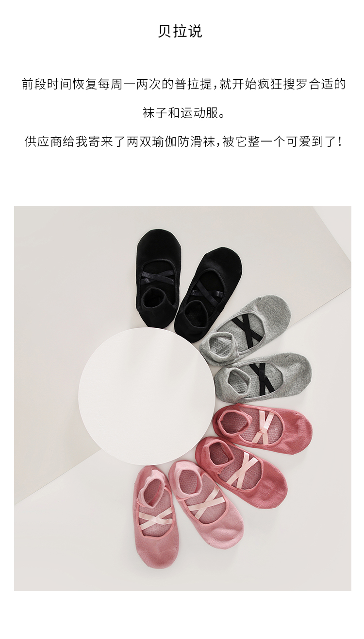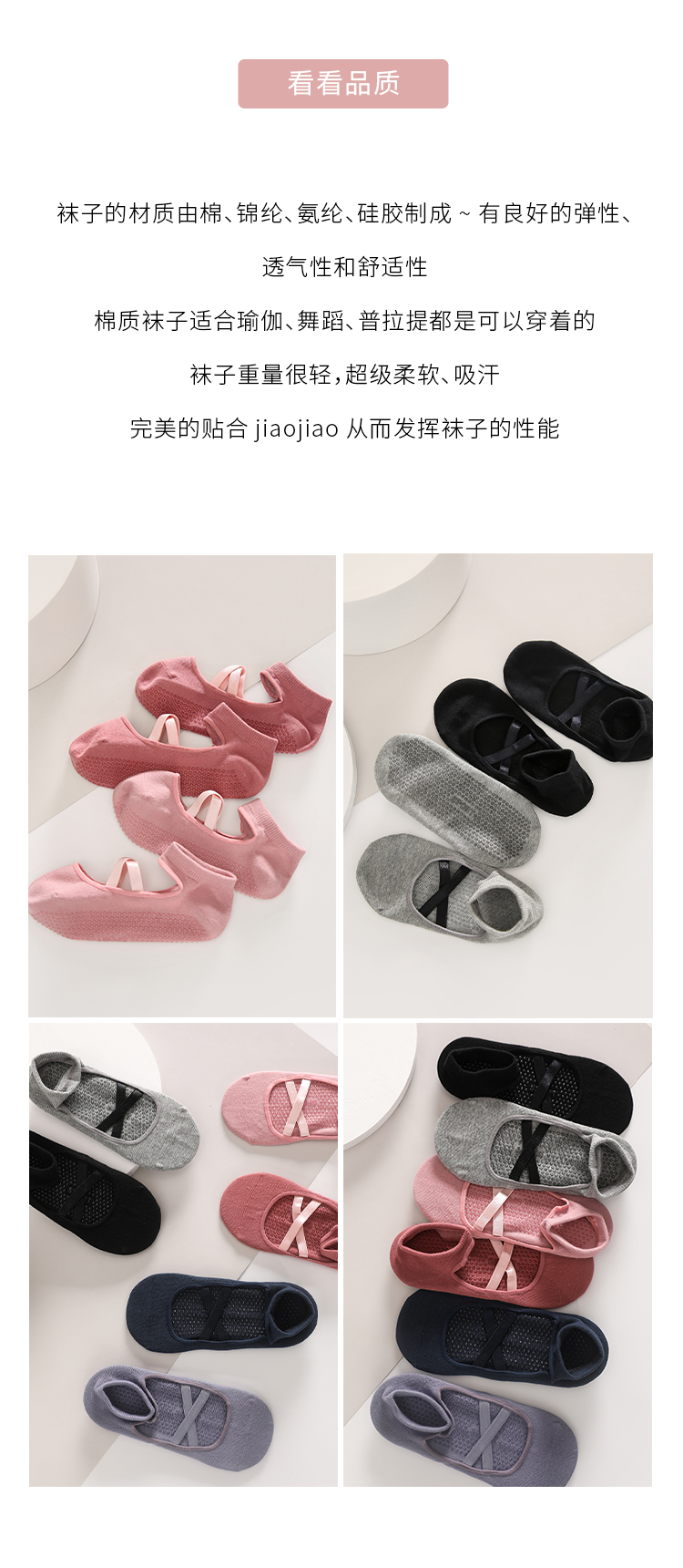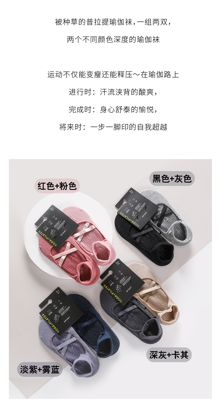 两双一组 颜值在线 普拉提瑜伽袜 柔软防滑|透气吸汗棉质 芭蕾风设计 经典颜色任你挑选