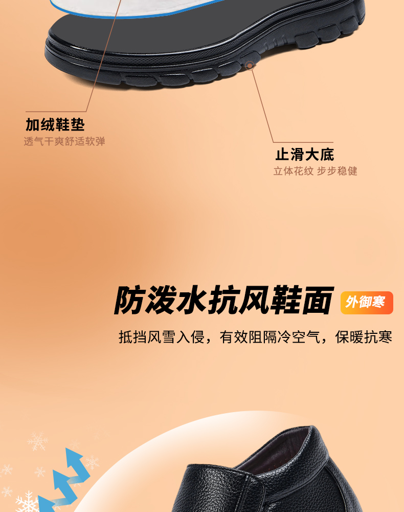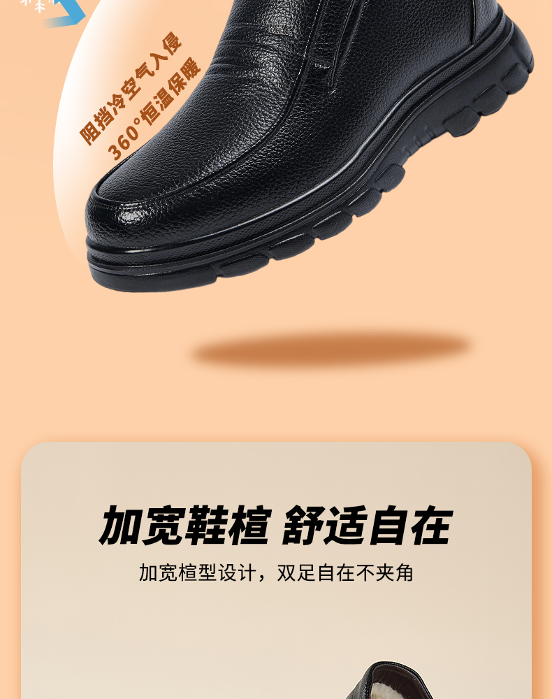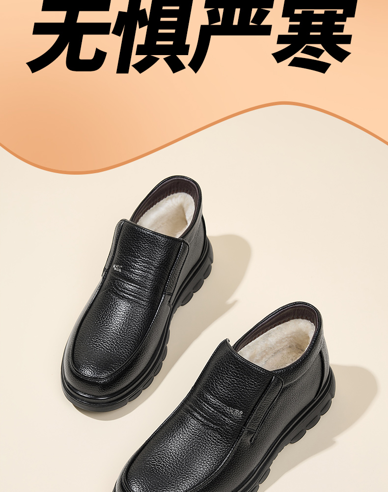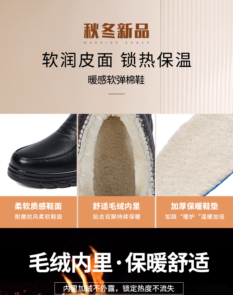 回力男鞋皮鞋2025年新款冬季棉鞋中老年人加绒保暖鞋子厚底爸爸鞋