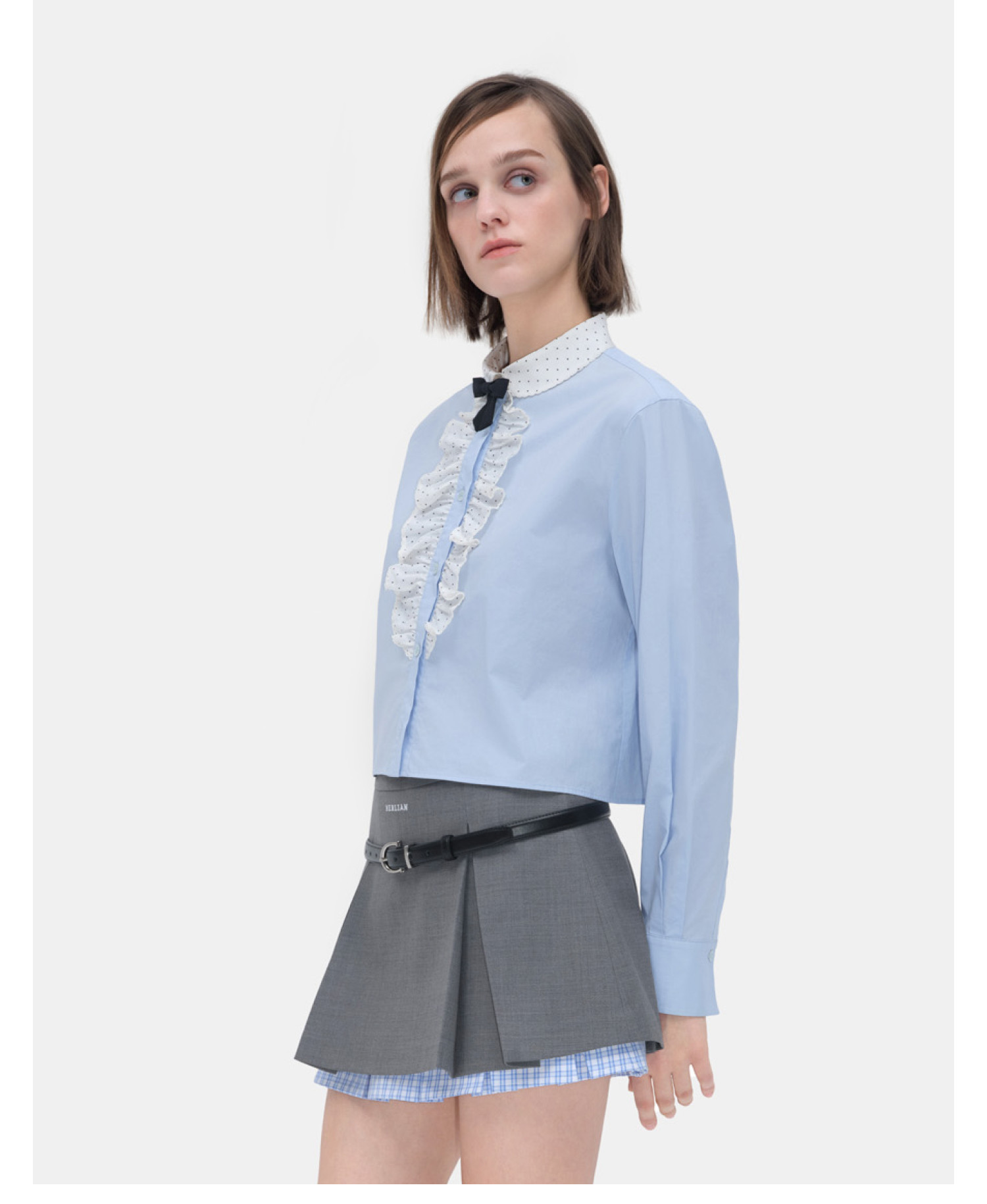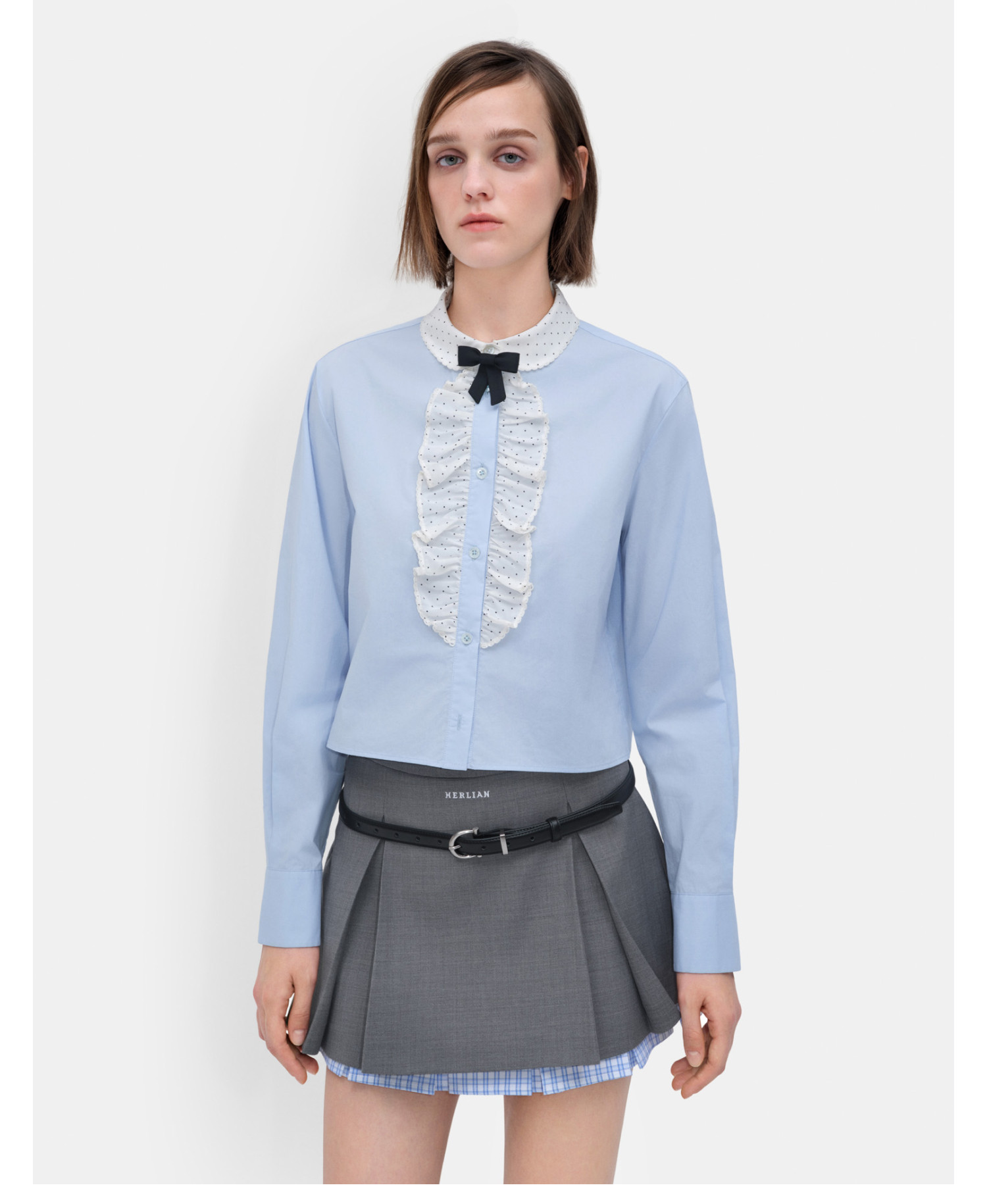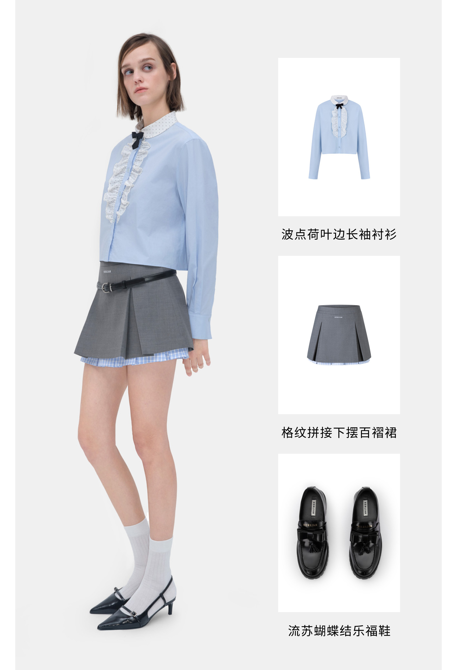 HERLIAN 2026年春季新品波点荷叶边娃娃领设计女士长袖衬衫