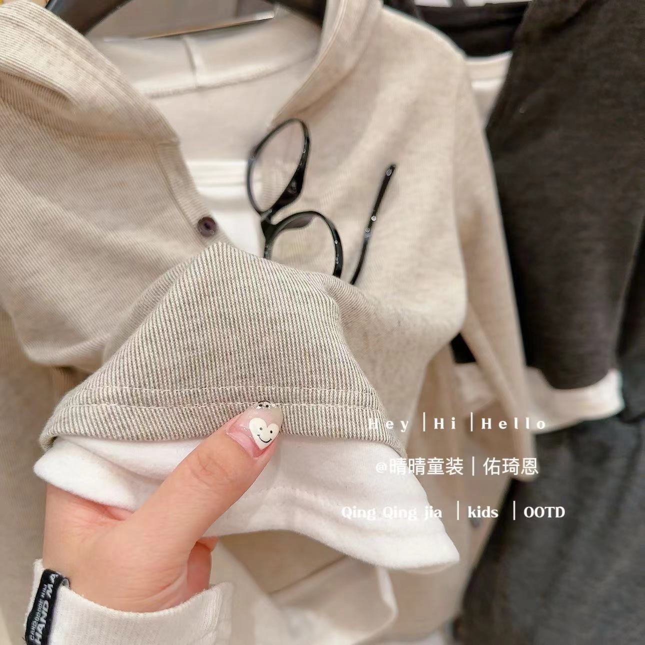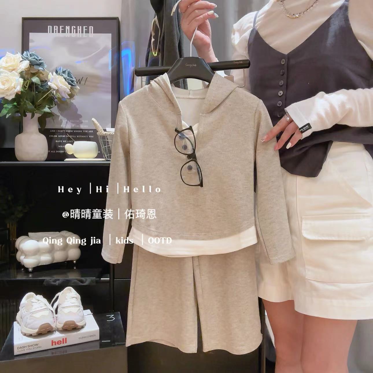 【爆款上新慕斯绒假两件连帽打底衫套装】巴比童装阔腿裤两件套秋季套装儿童