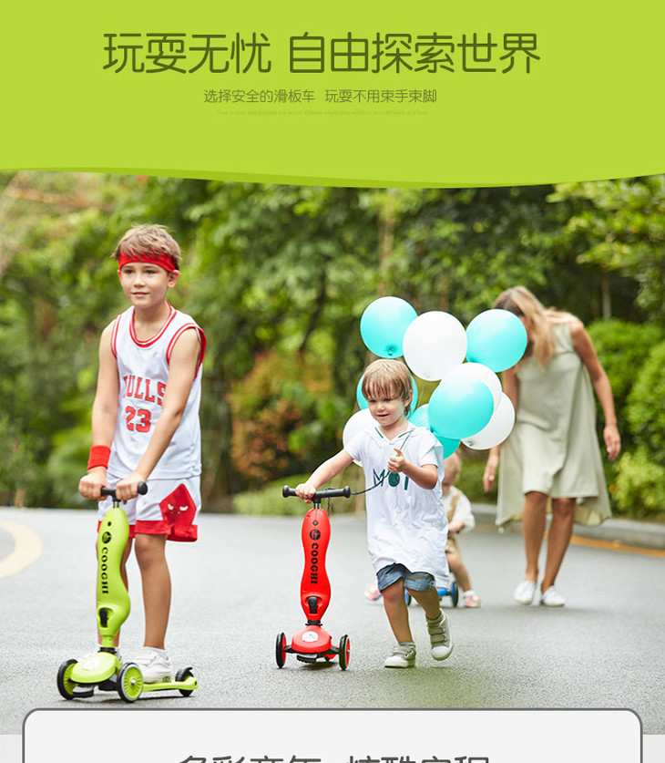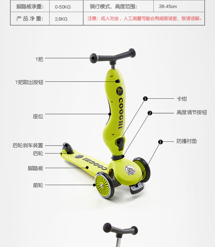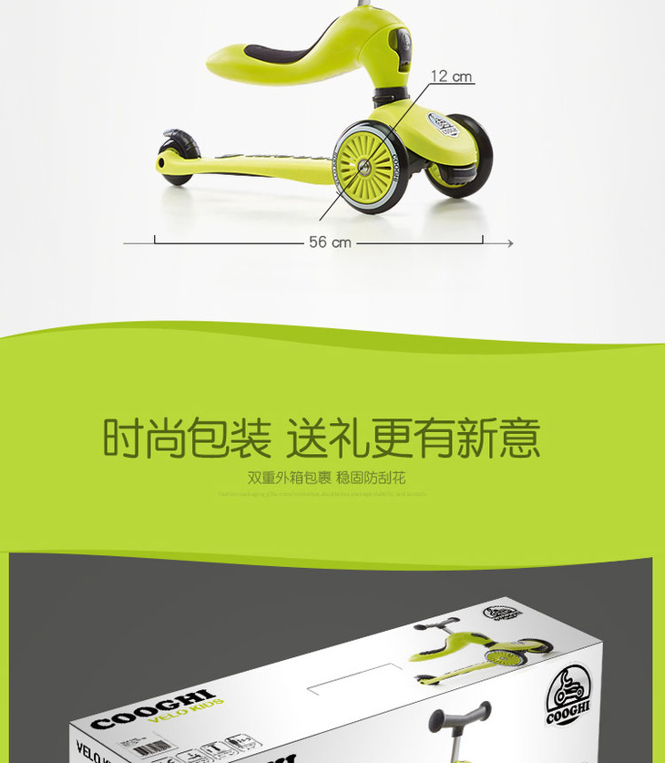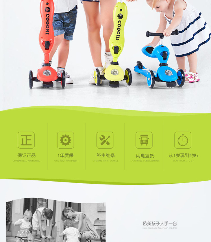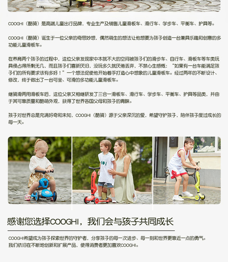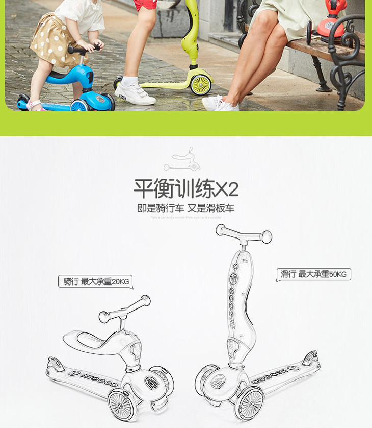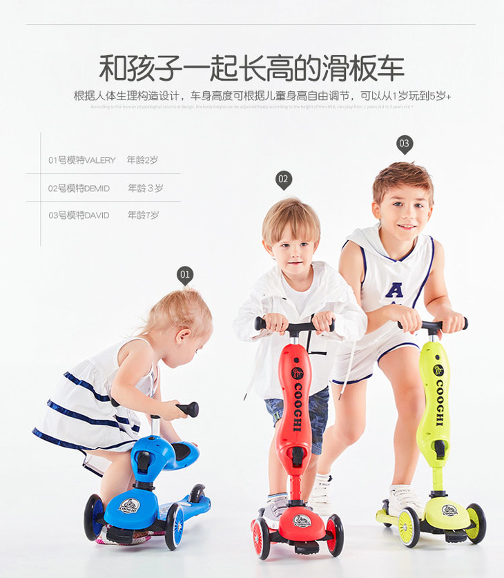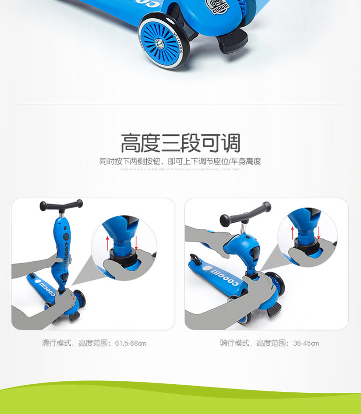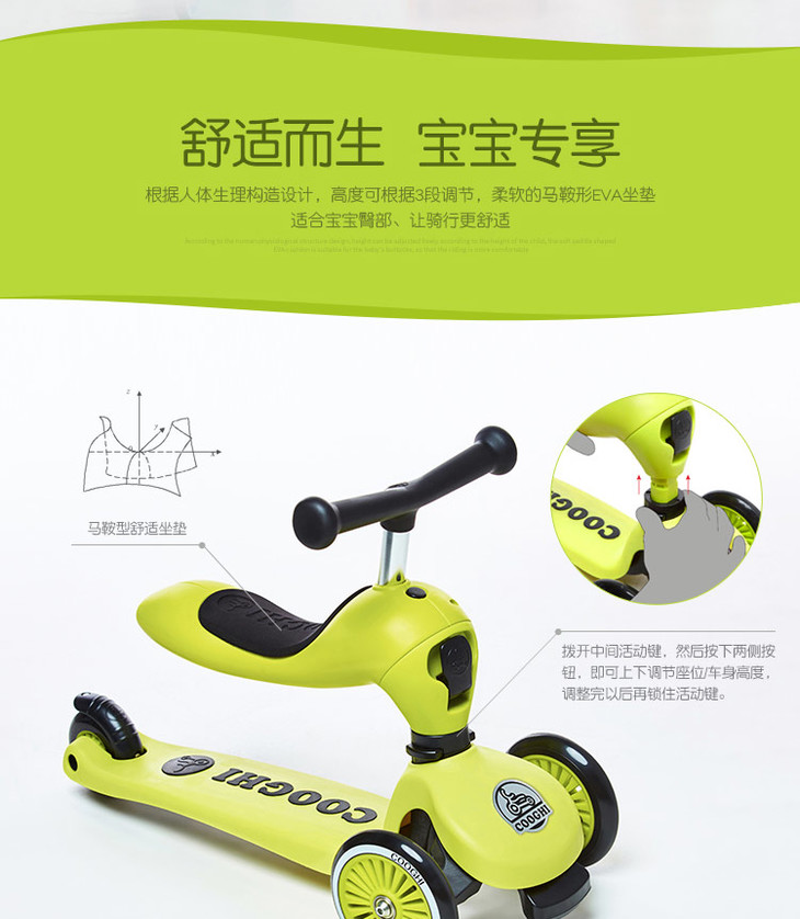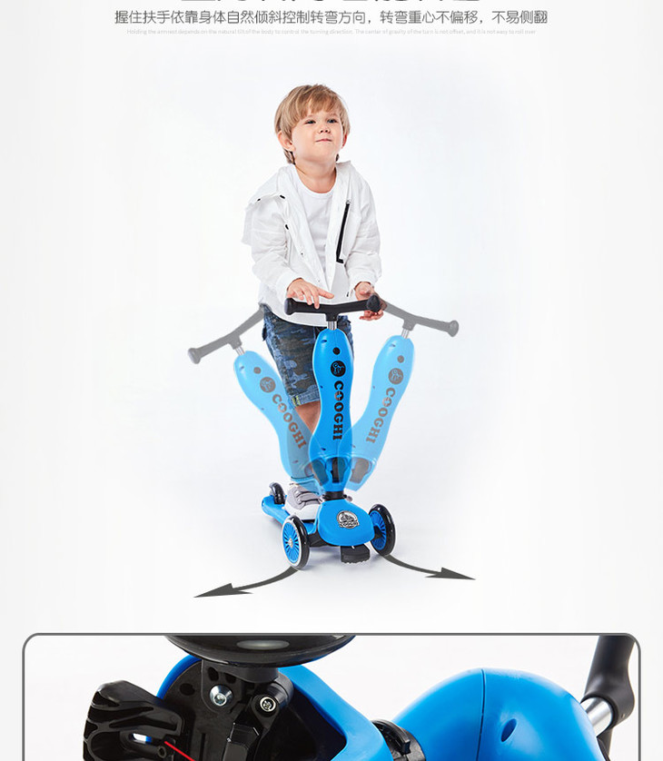 COOGHI酷骑儿童滑板车可坐可骑滑两用玩具车2-3-5岁宝宝三轮童车(V1/V2/V3经典款不发光)