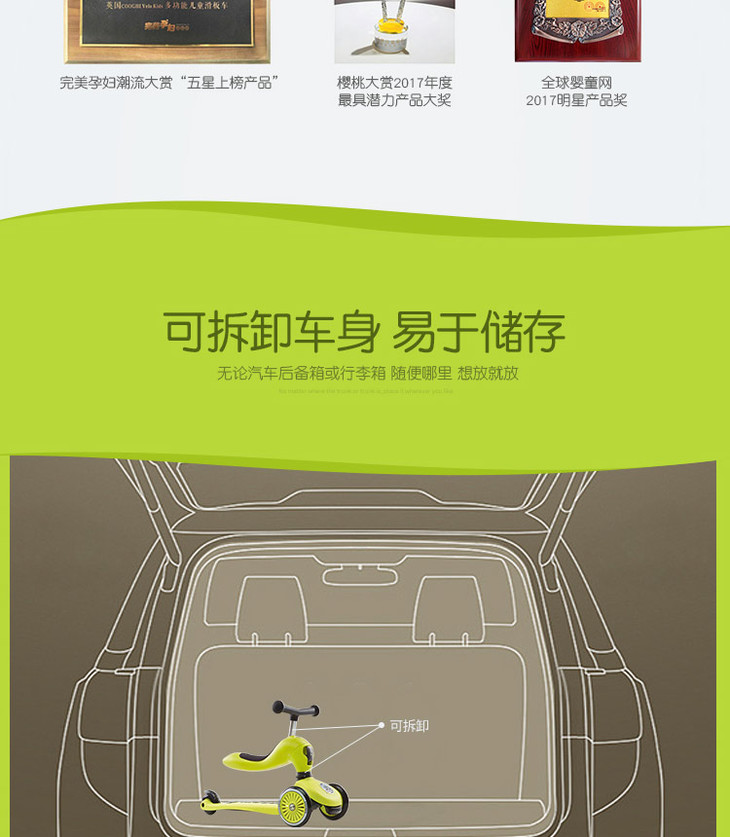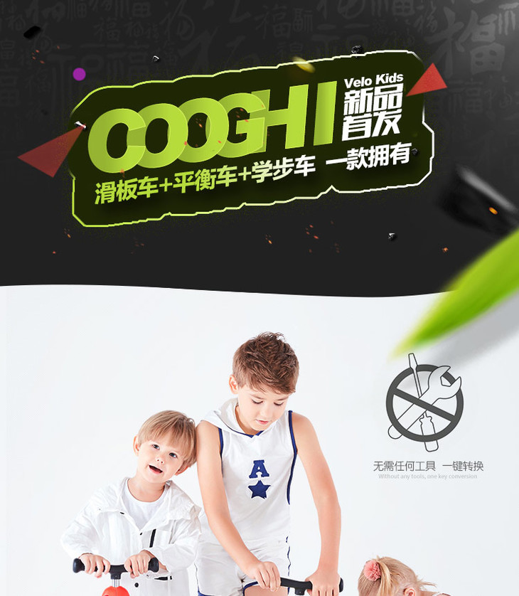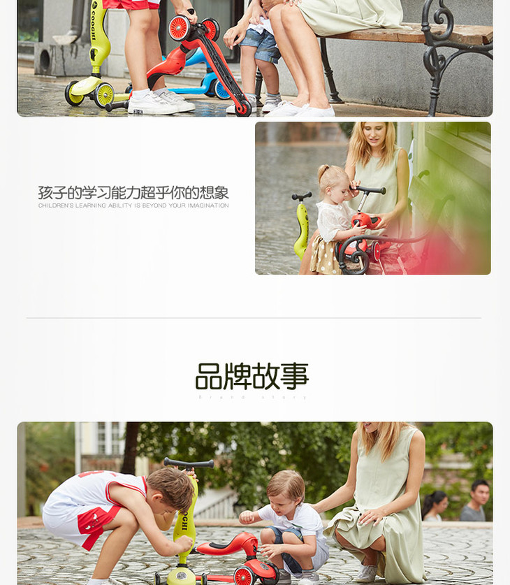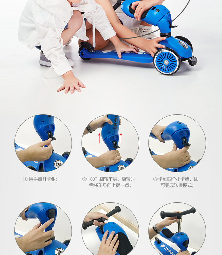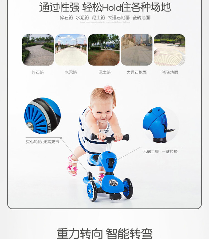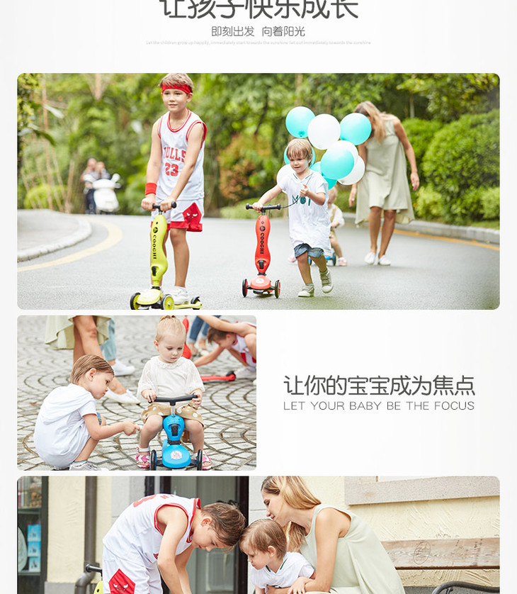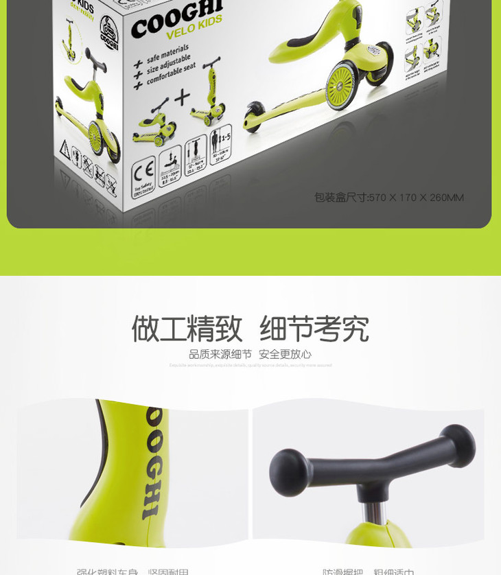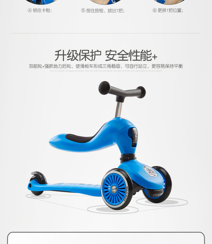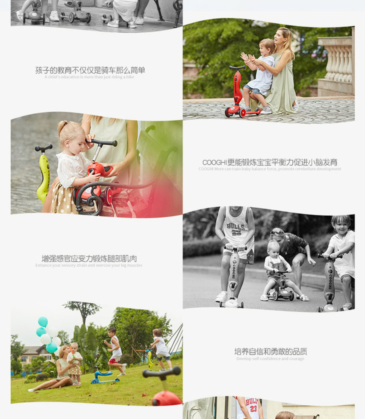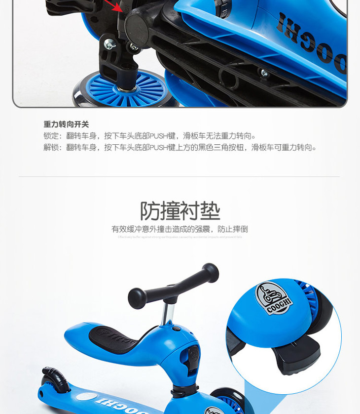 COOGHI酷骑儿童滑板车可坐可骑滑两用玩具车2-3-5岁宝宝三轮童车(V1/V2/V3经典款不发光)
