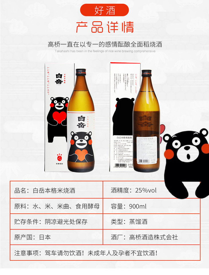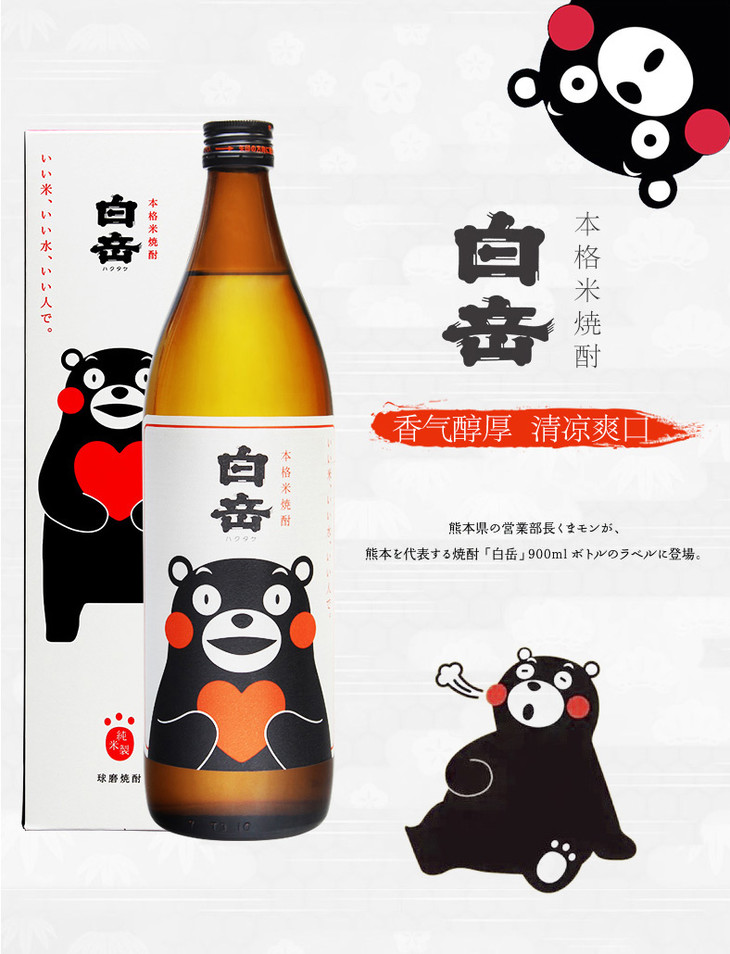 白岳本格米烧酒 熊本熊米酒蒸馏酒日本烧酒 900mL/瓶