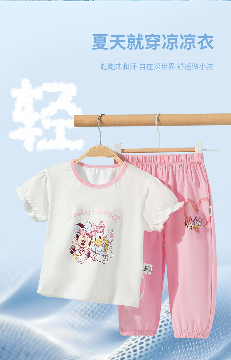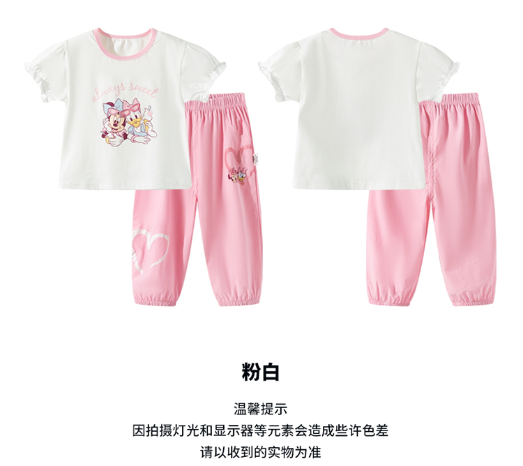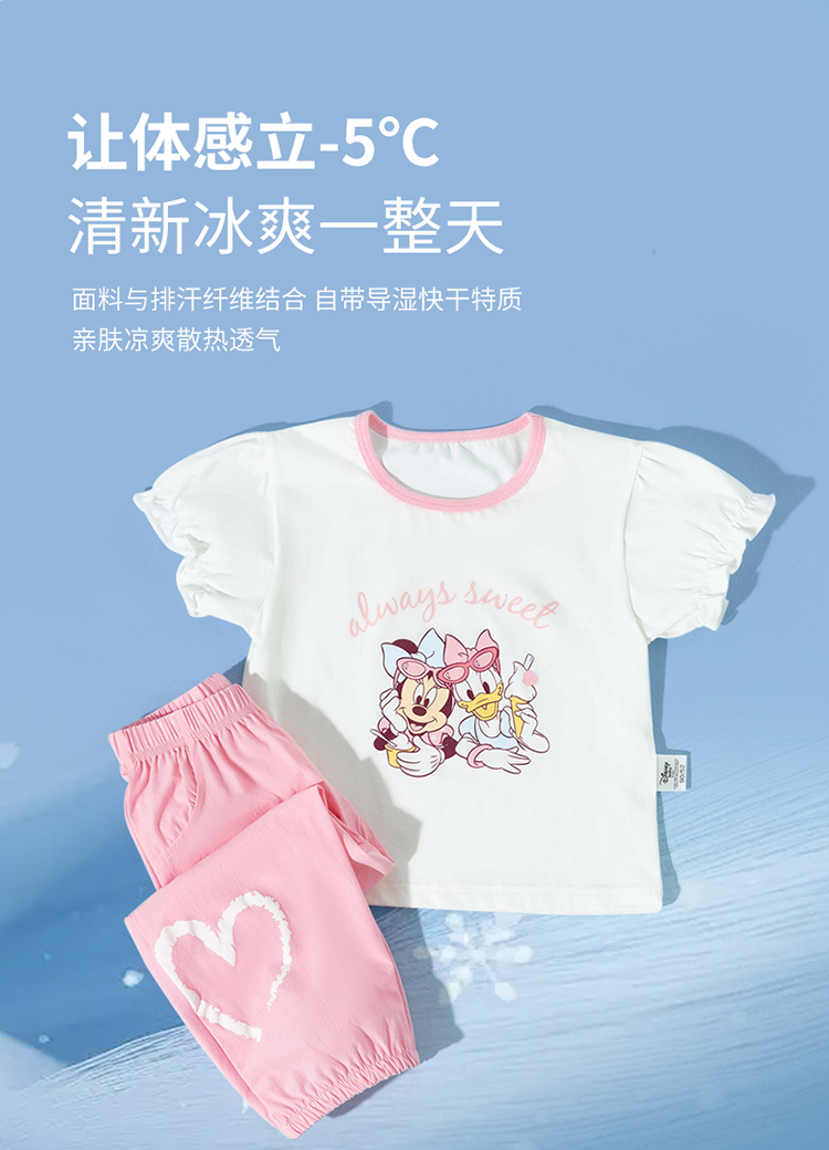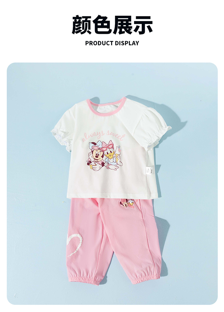 迪士尼【米妮凉感套装】25春夏新款花边袖冰感T恤短袖透气速干防蚊裤ZD2ET005