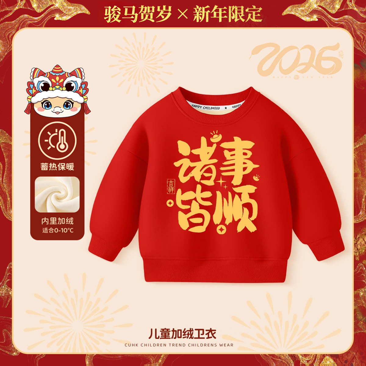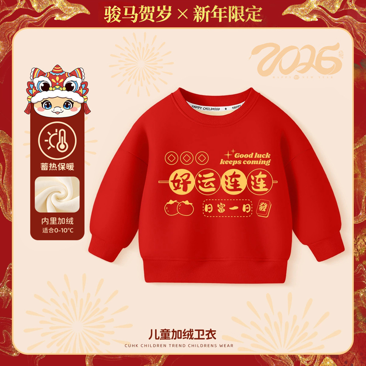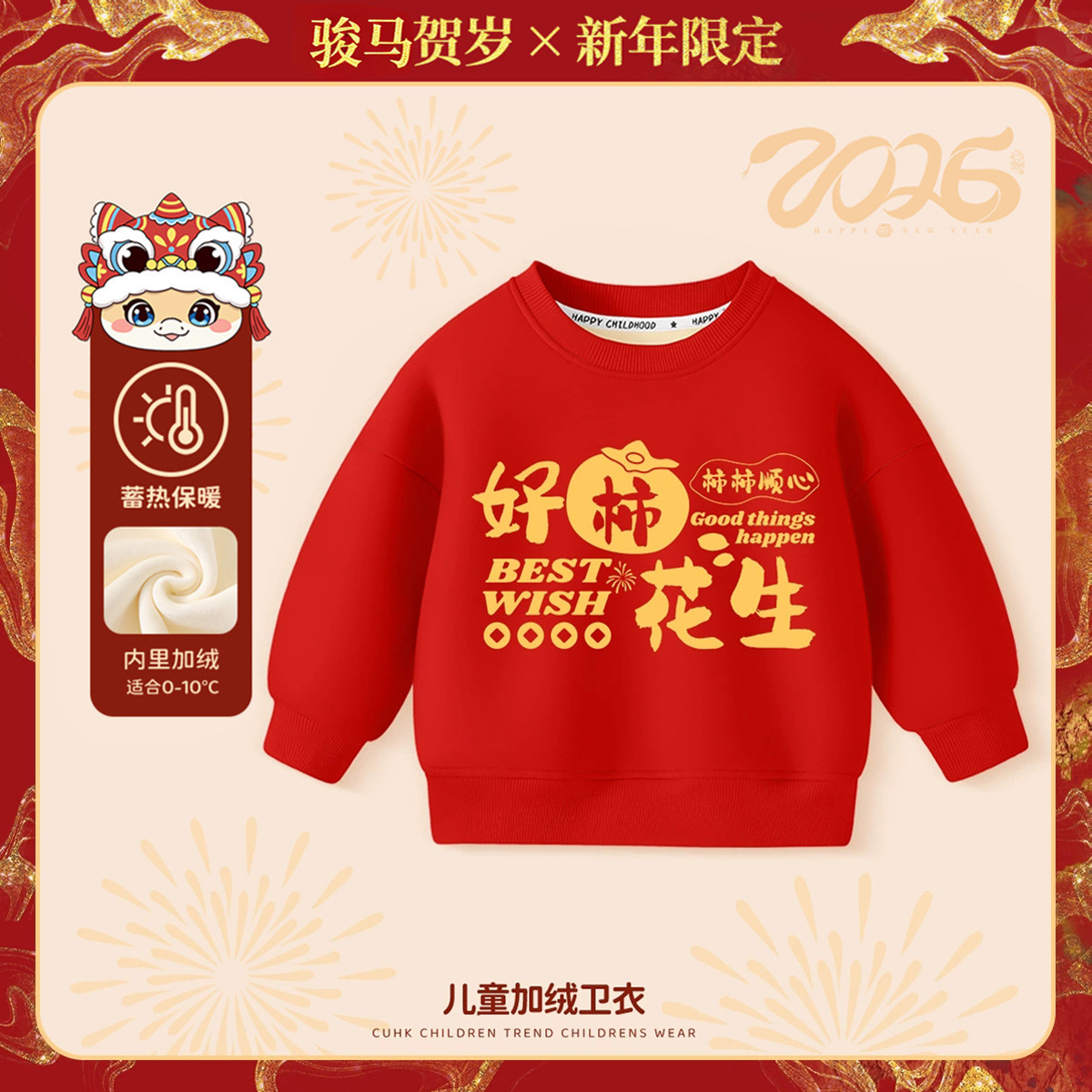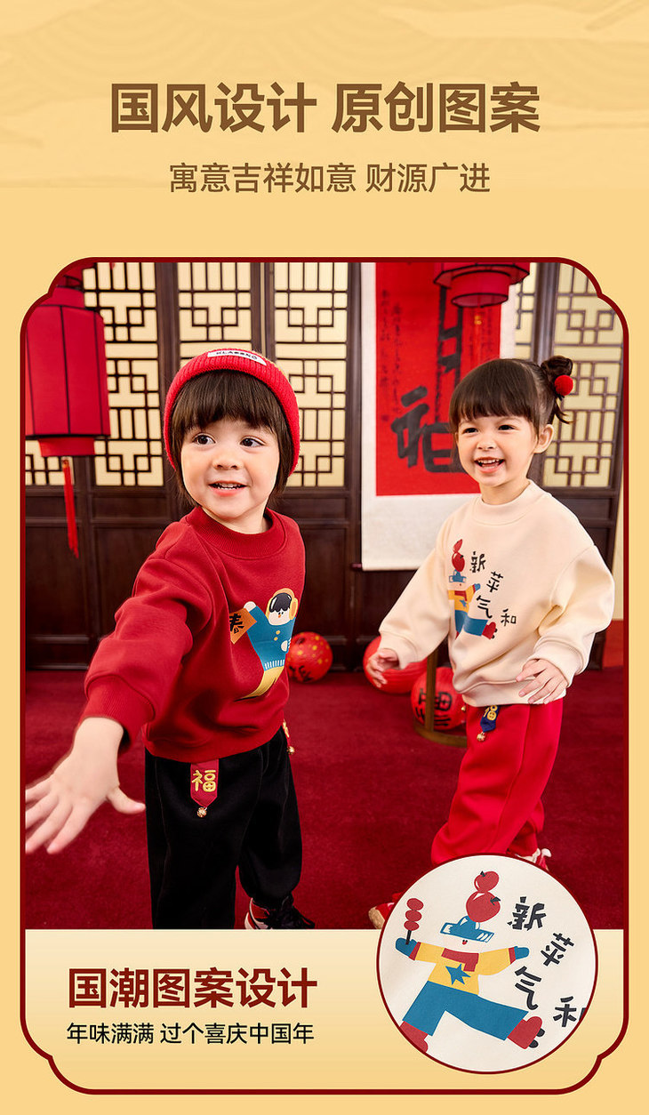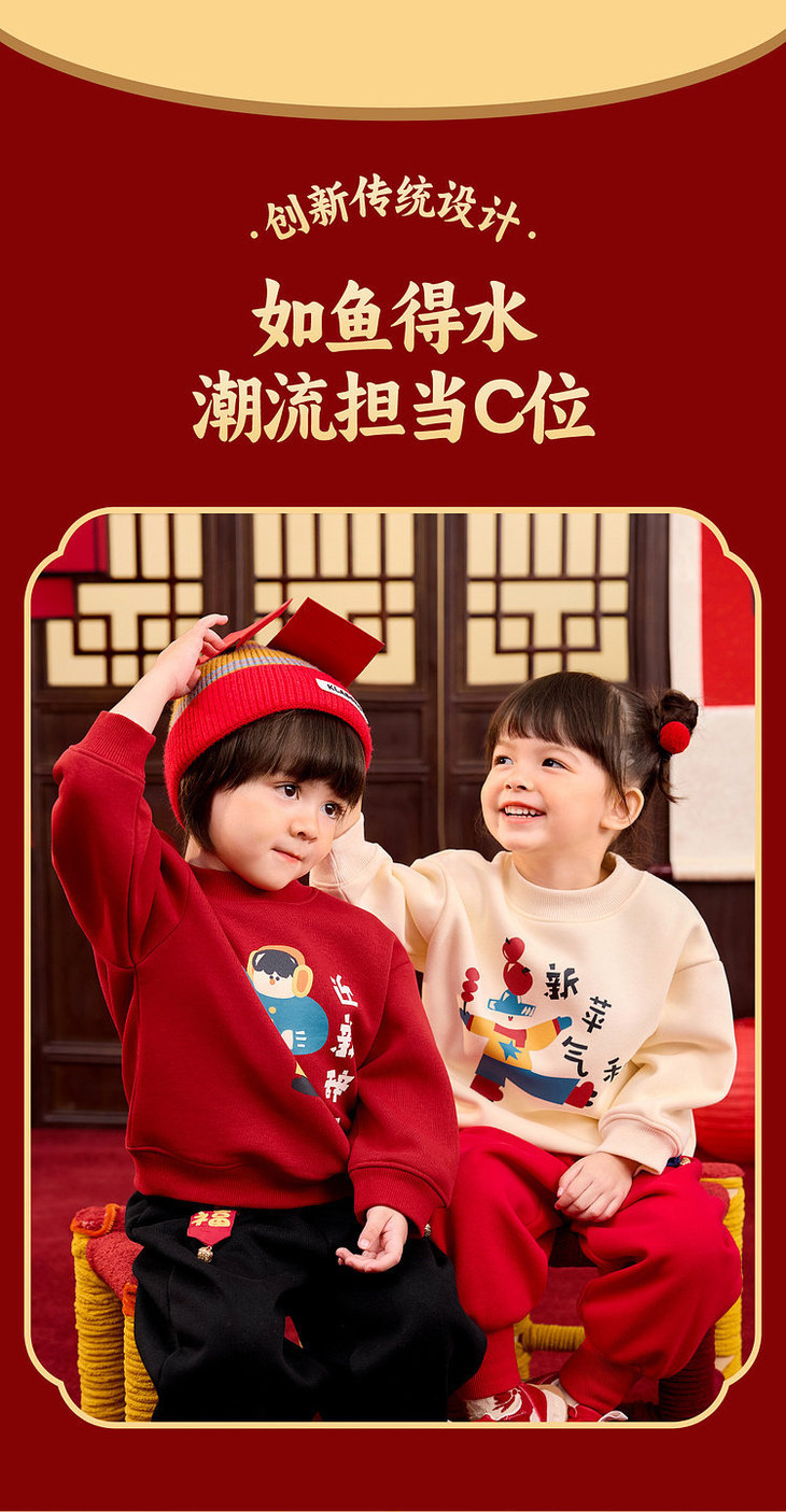【59.9元任选2件】2026年新年儿童宝宝加绒卫衣新年装婴儿衣服男童拜年服女童过年服童装外套90-140