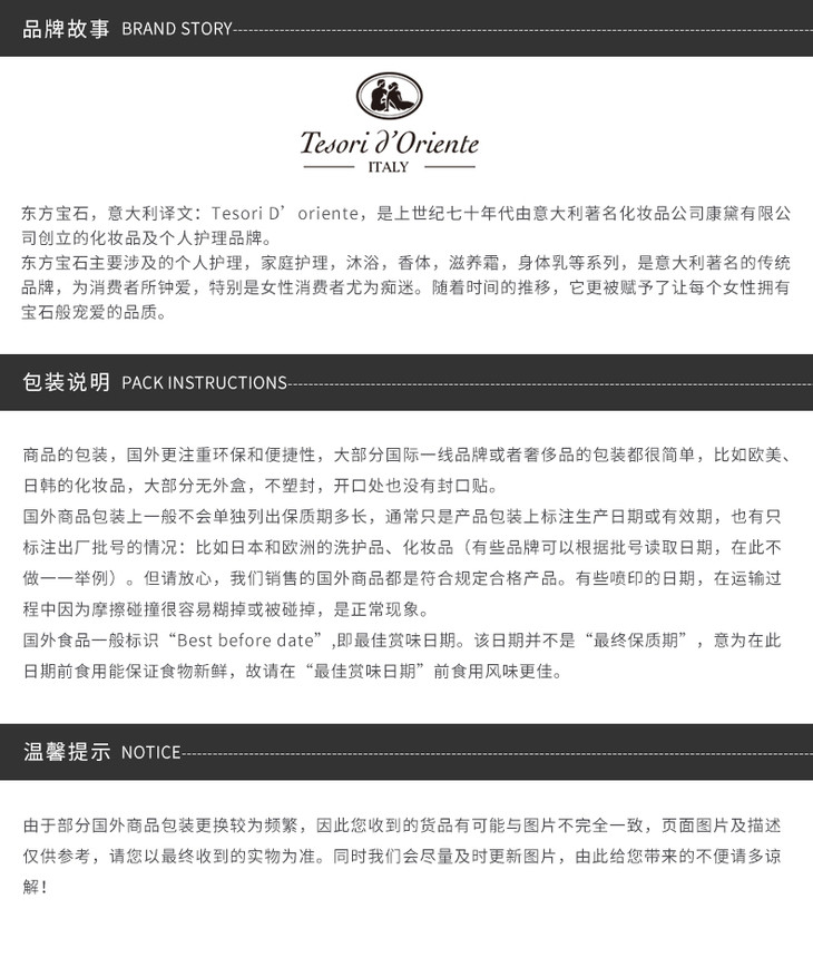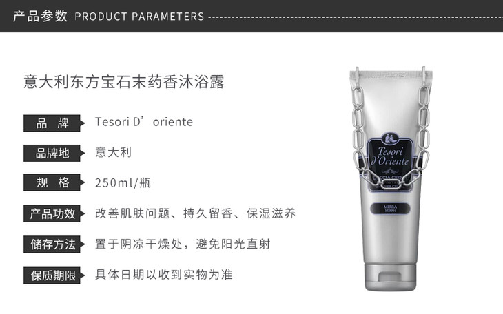 【保税仓】意大利Tesori d'Oriente东方宝石末药香沐浴露250ml