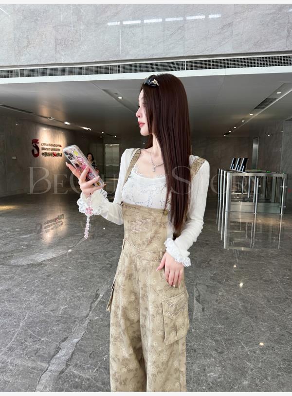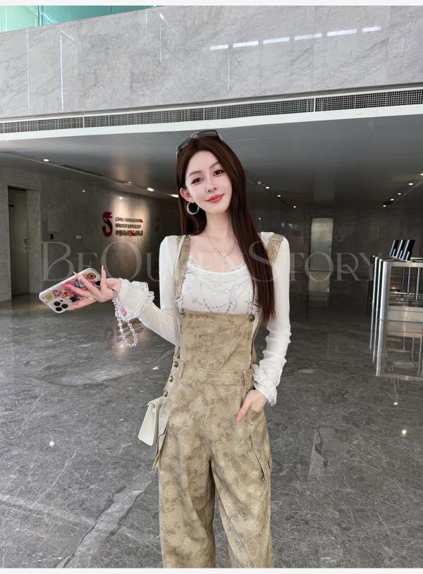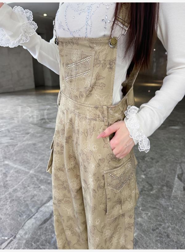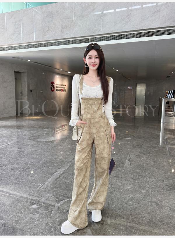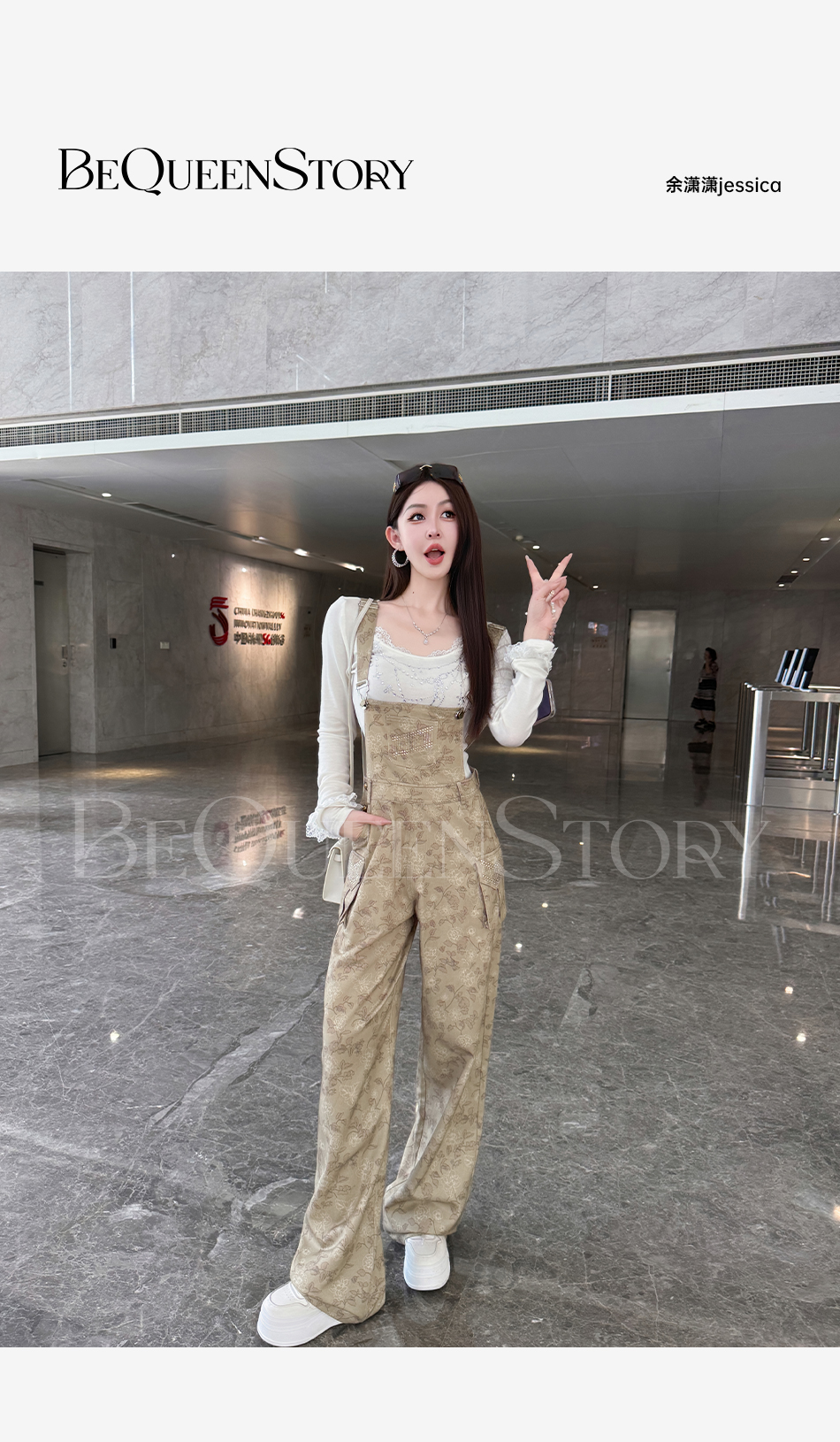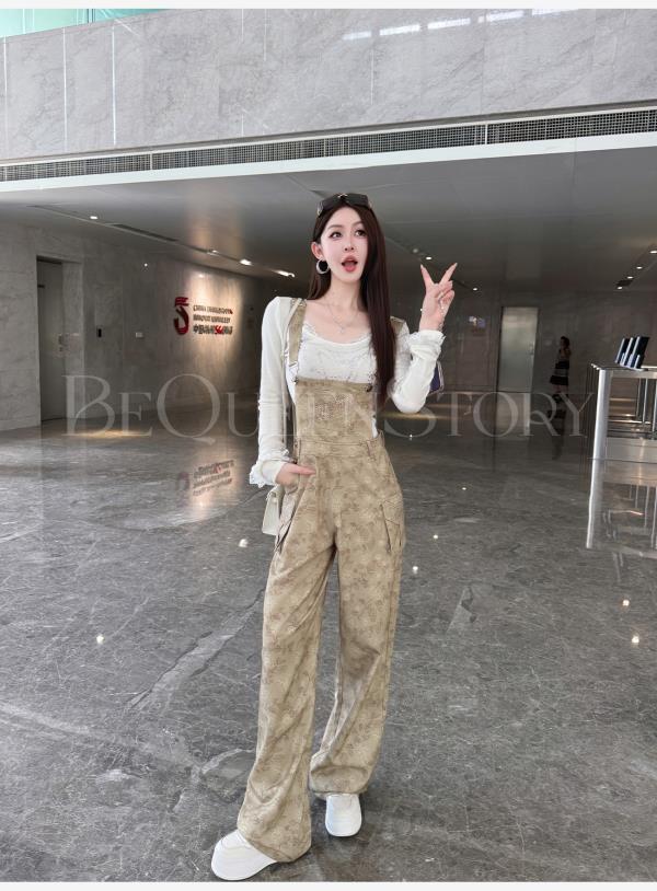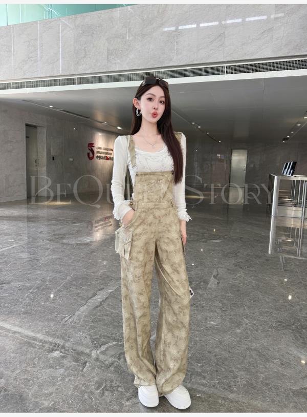 【大货捡漏,不退不换】 【街头写意】时尚舒适莱赛尔复古印花工装连体背带裤早秋