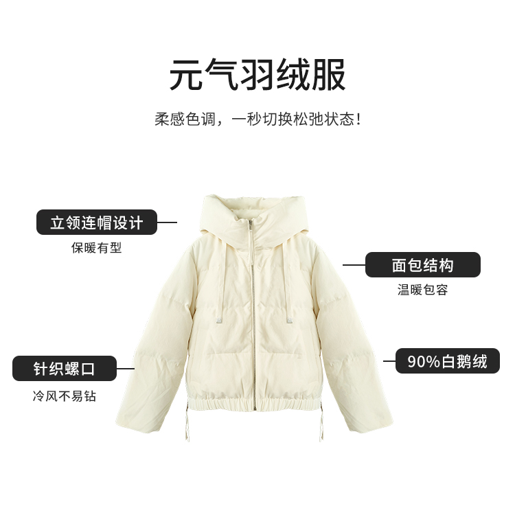 【商场同款】CNO5004 “2色元气羽绒服 ” 轻暖90白鹅绒 暖意十足 连帽羽绒服