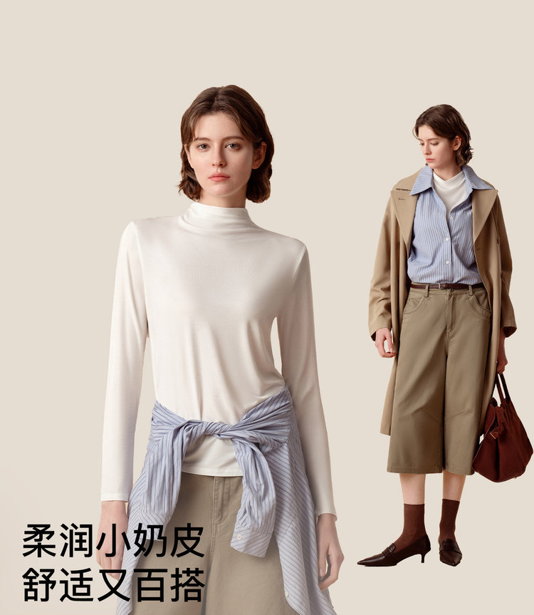 ¹日本代工厂【男姐同款】柔润小奶皮半高领打底衫 舒适又百搭 亲肤软糯 轻薄保暖 CF01-CRMM-BSPK