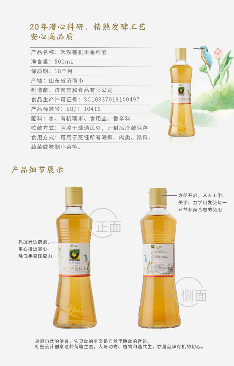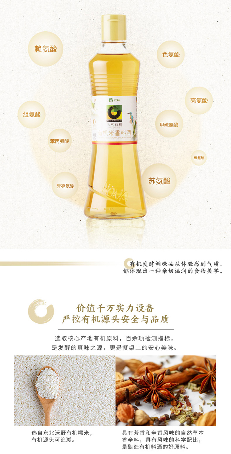 禾然有机料酒500ml 米香料酒 增香提鲜去腥炒菜