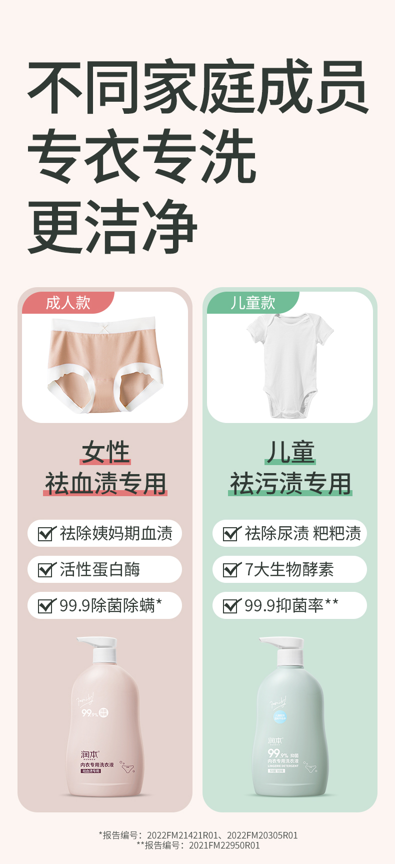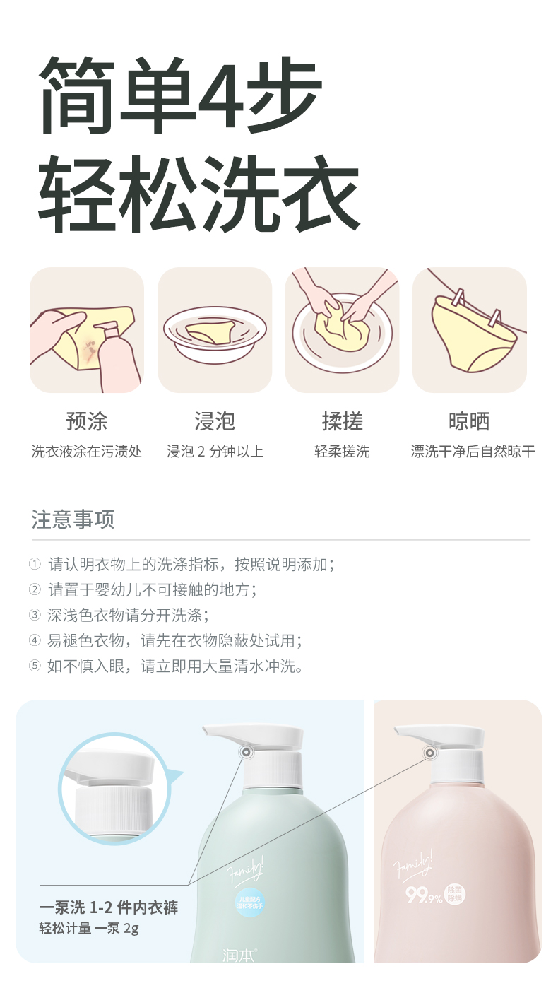 【活动价 4瓶39.9】润本内衣专用洗衣液 儿童款 祛血渍款 湿厕纸 生理期必囤【8.6】