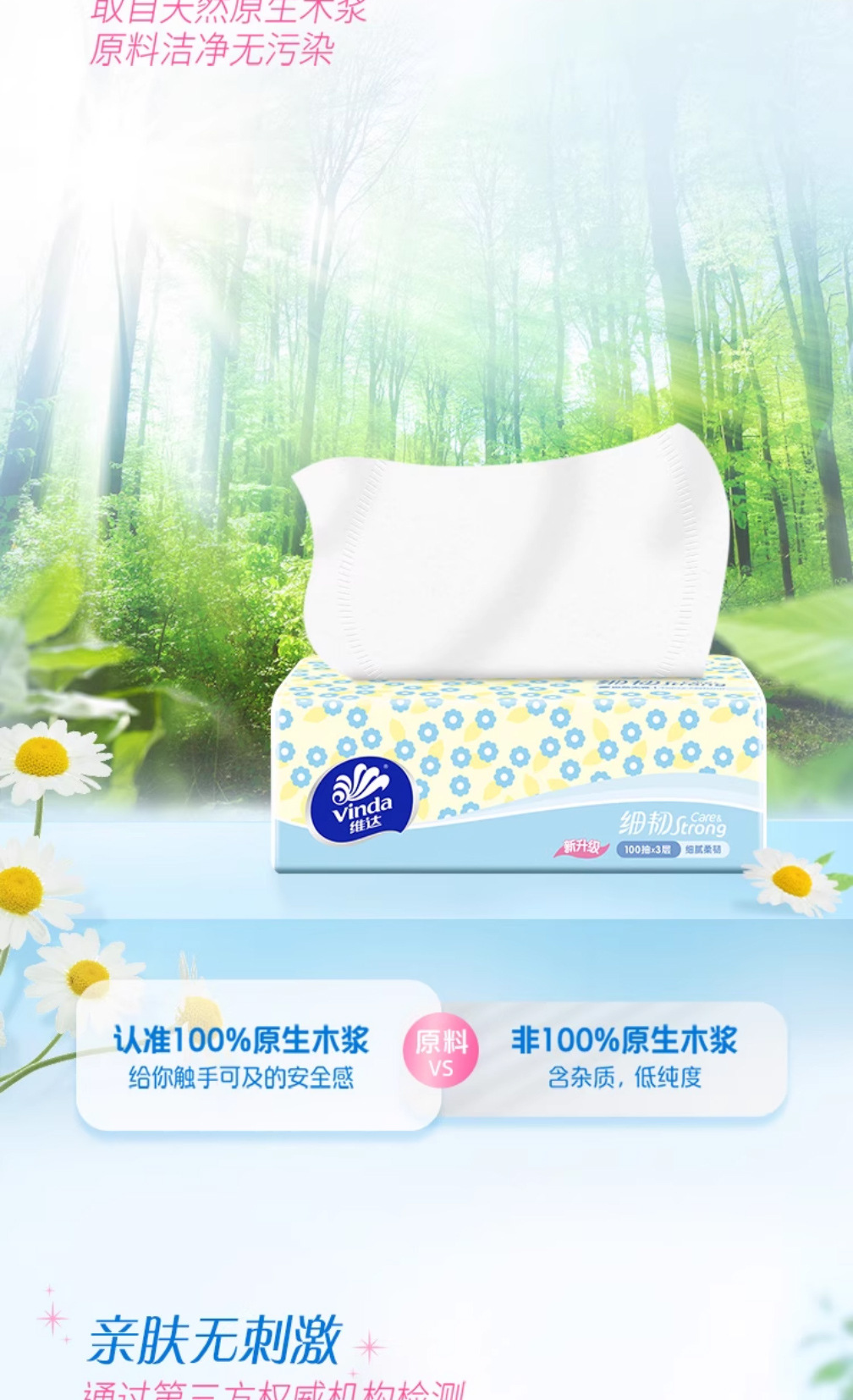 【原生木浆自然无香❗️亲肤无刺激】维达抽纸纸巾细韧3层100抽面巾纸餐巾纸家用卫生纸。jb
