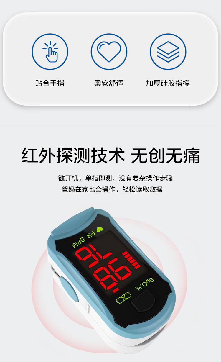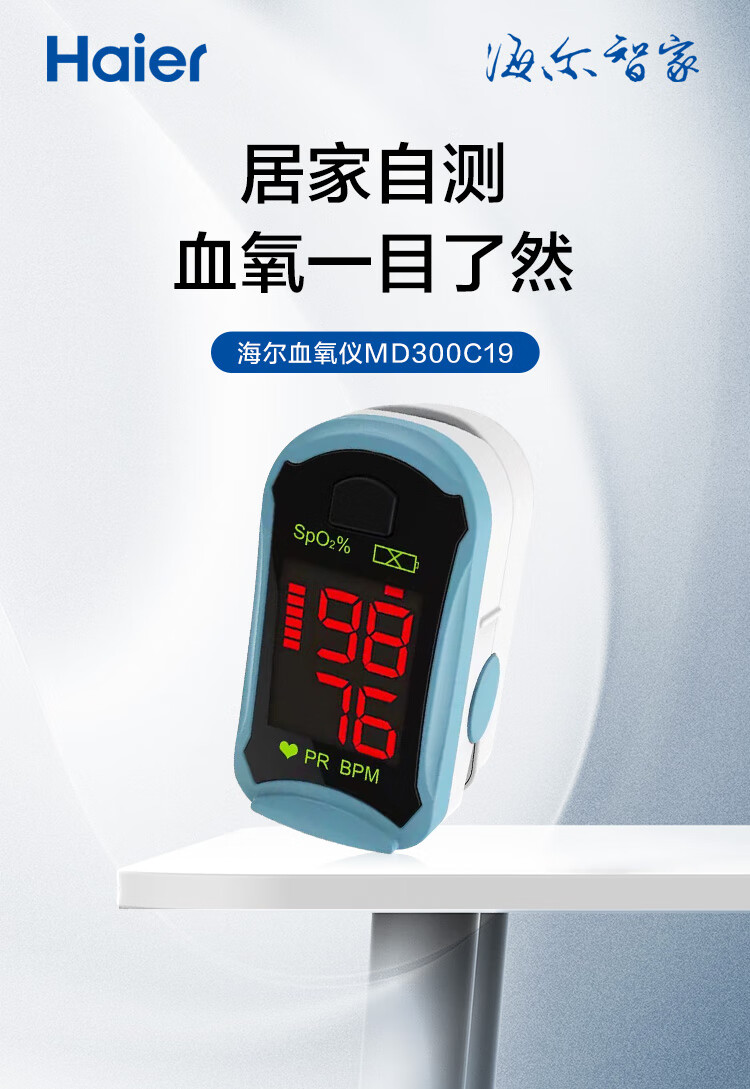 海尔血氧仪指夹式医用心跳心率脉搏指尖自测仪医用指夹血氧仪 血氧仪C19