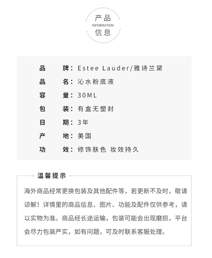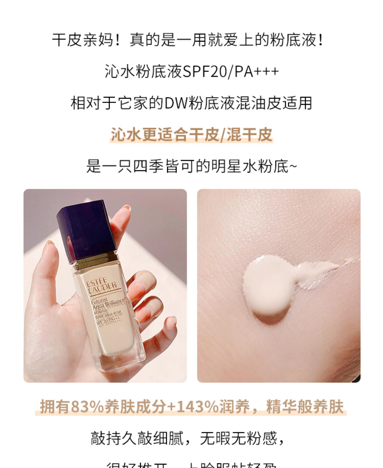 雅诗兰黛 沁水粉底液30ml 补水保湿防晒遮瑕持久不脱妆 干皮救星