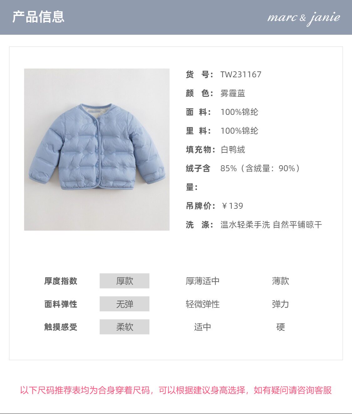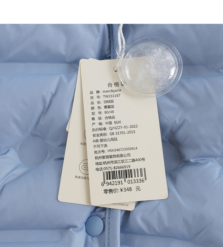 马克珍妮宝宝秋冬新款男女童超轻保暖羽绒服儿童羽绒外套231167