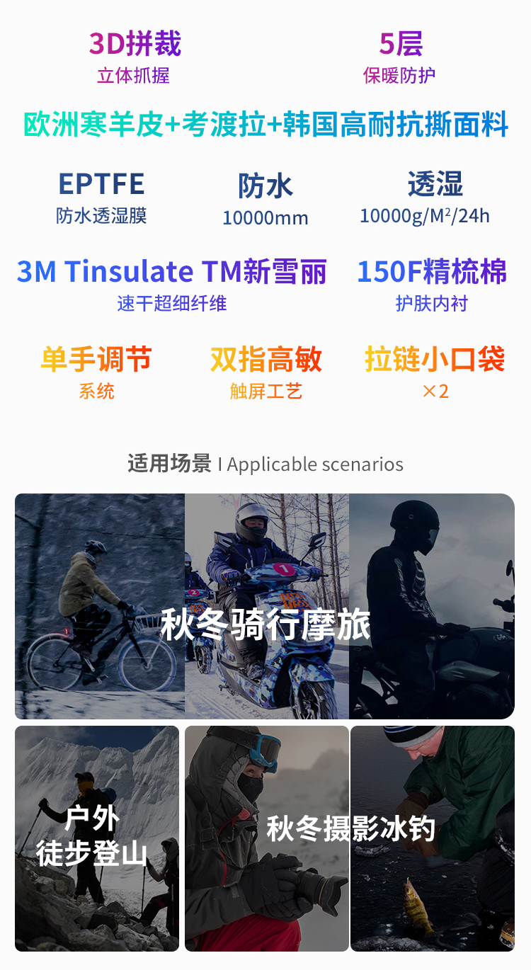 冬季防风防水保暖厚手套 登山 滑雪 骑车(tbzg)