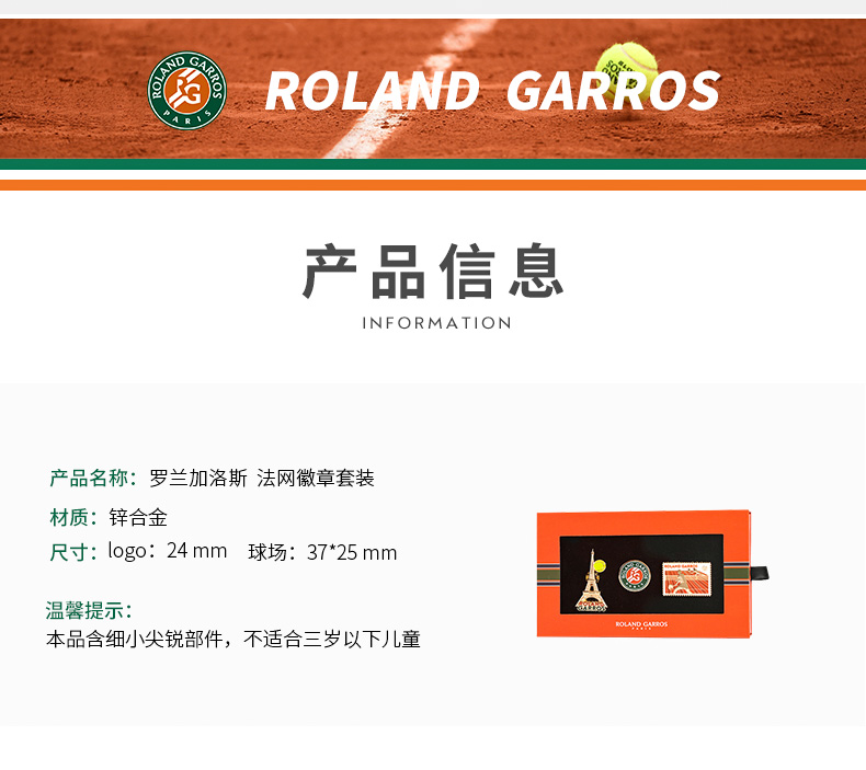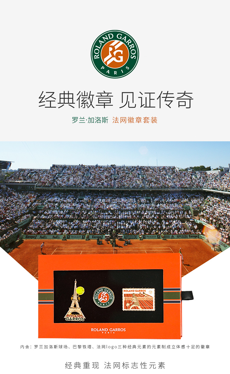 罗兰加洛斯法网网球赛事纪念周边徽章套装金属收藏胸针礼物赠品