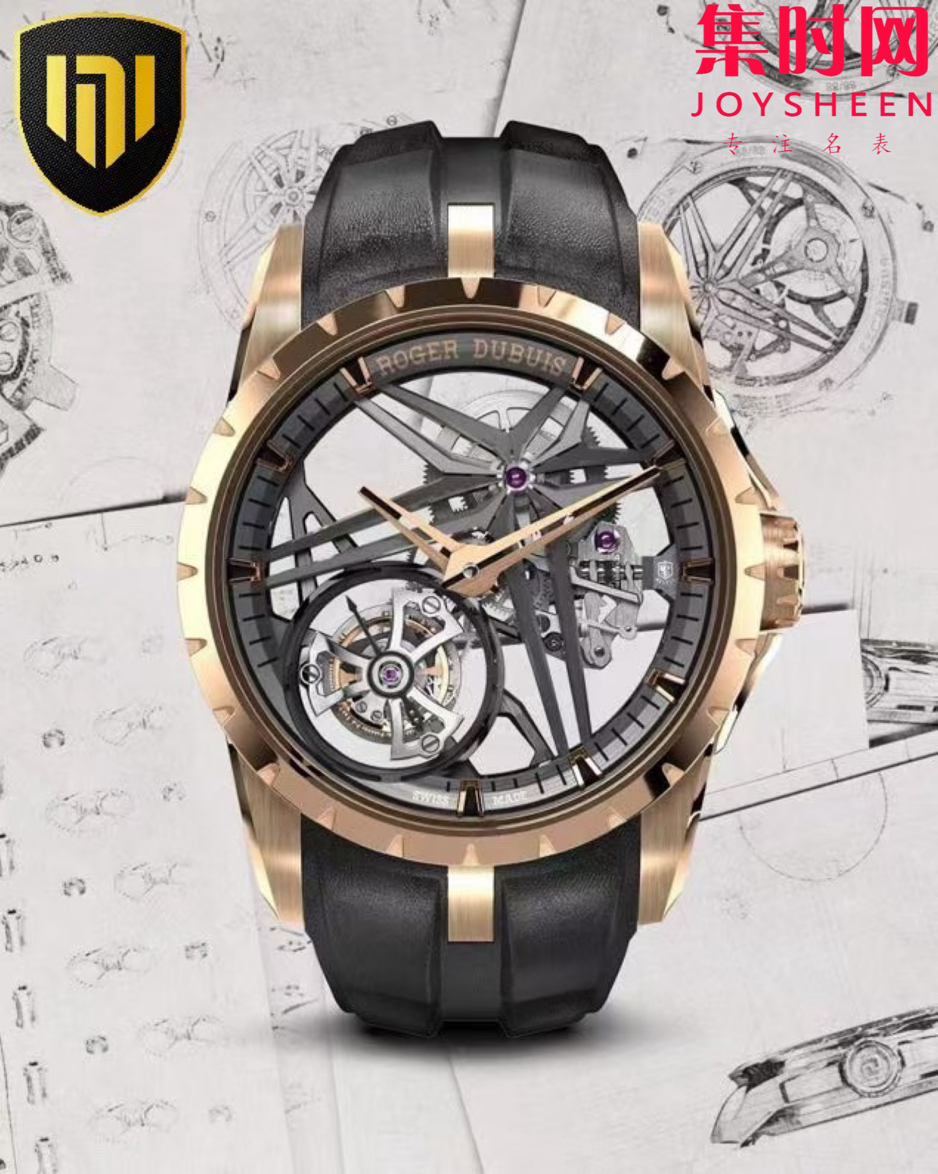 NEW罗杰杜彼王者镂空陀飞轮系列RDDBEX0836 男士腕表 立体小牛皮表带 真陀飞轮机