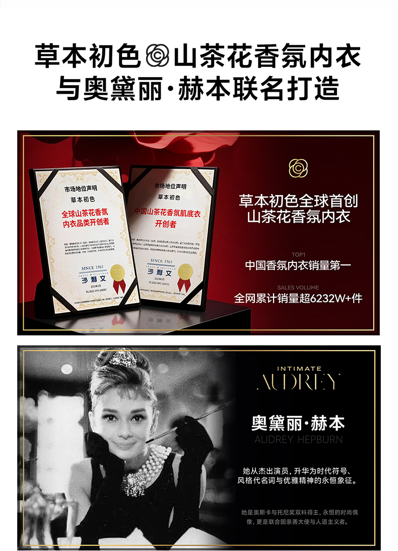【99元/2件,再送内裤1条】草本初色红山茶花香氛内衣5120,暖绒磨毛面料