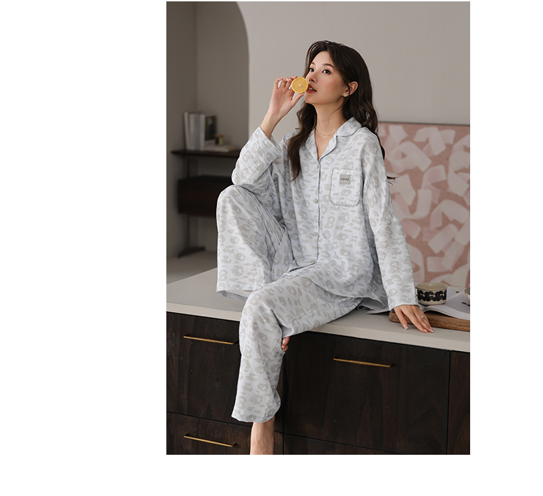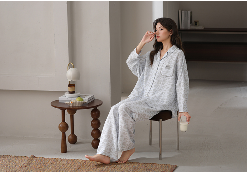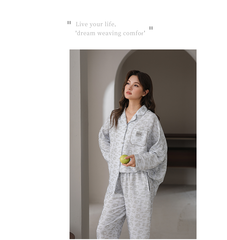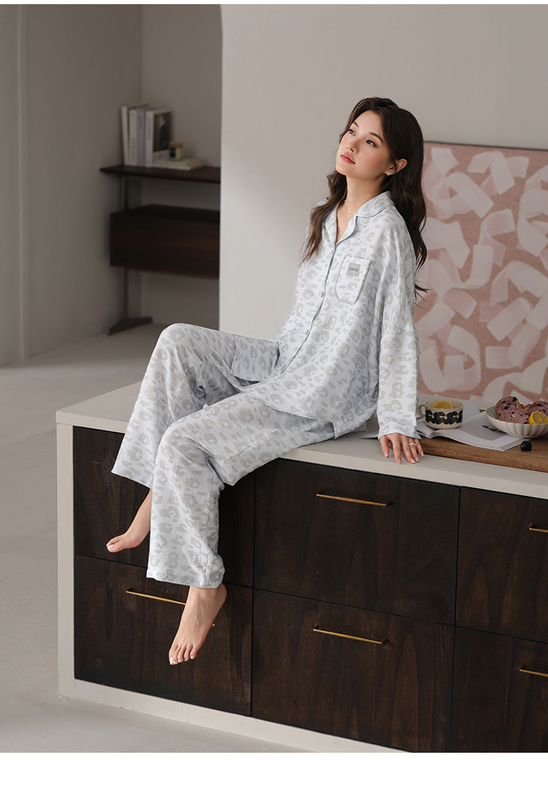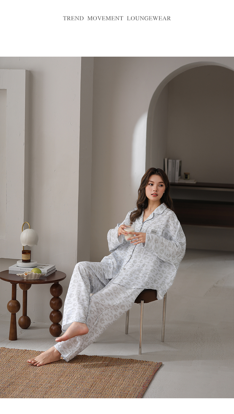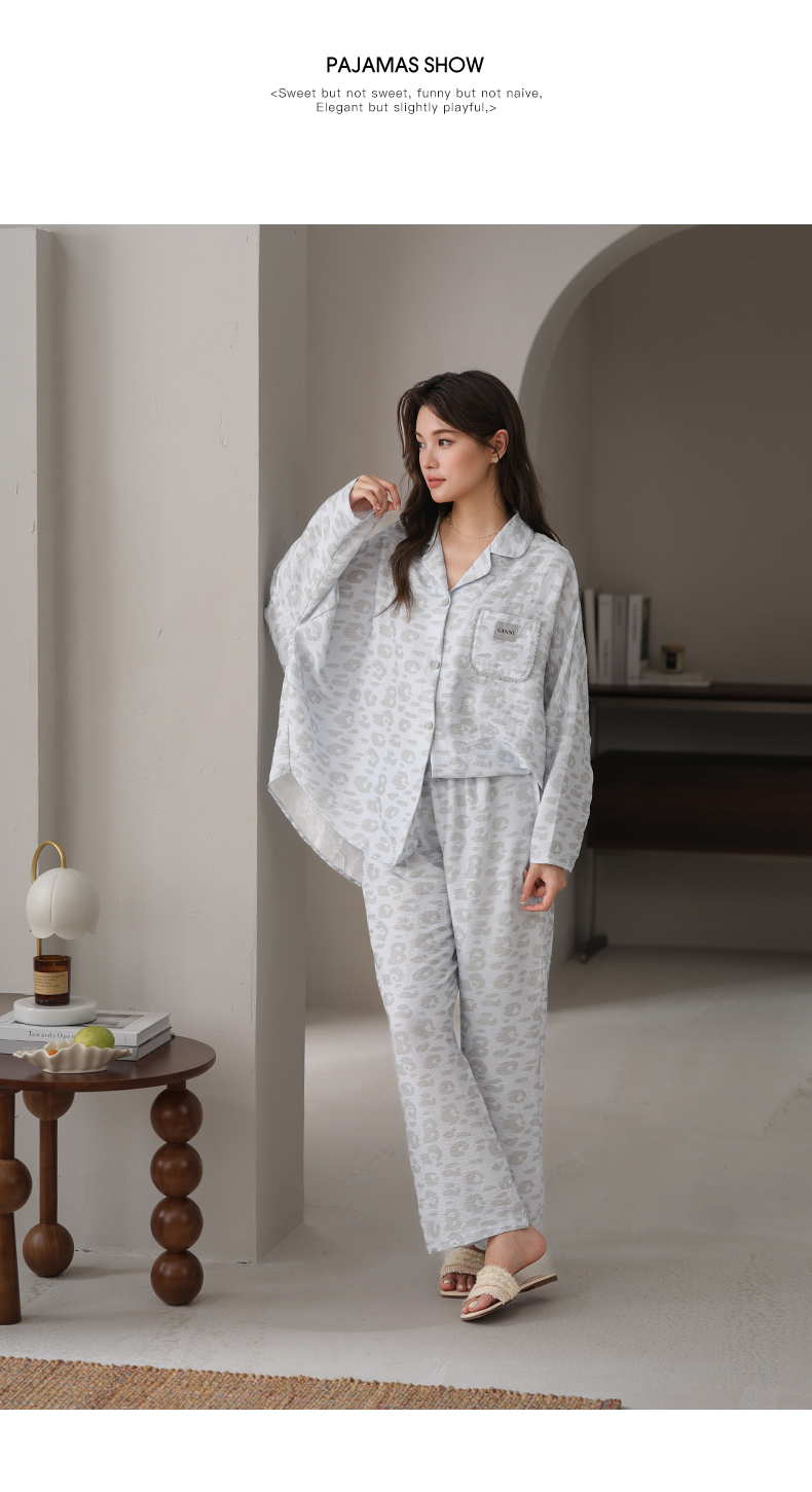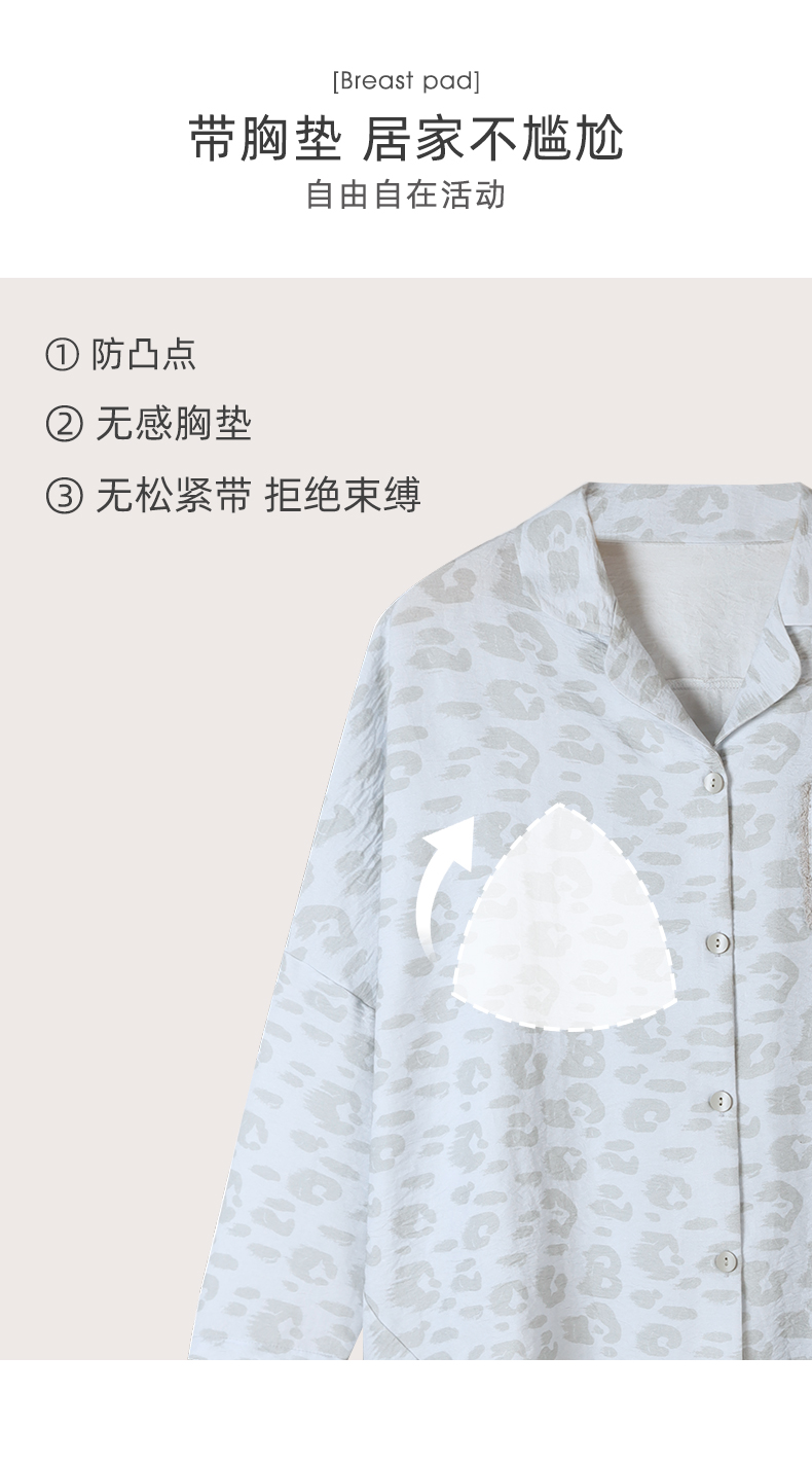 可人儿春秋季带胸垫泡泡绵女士长袖长裤睡衣可外出小众家居服套装