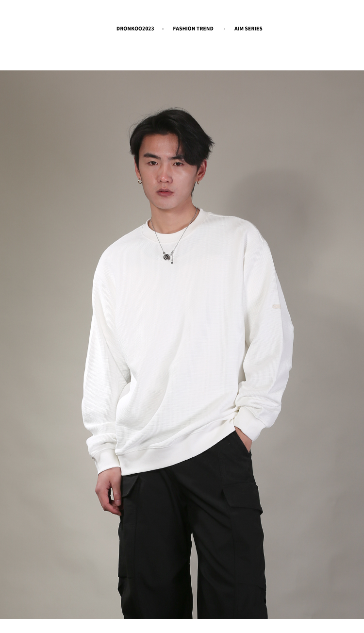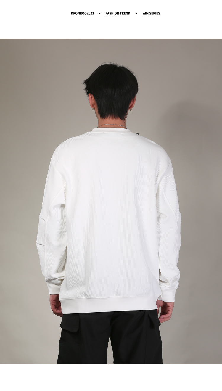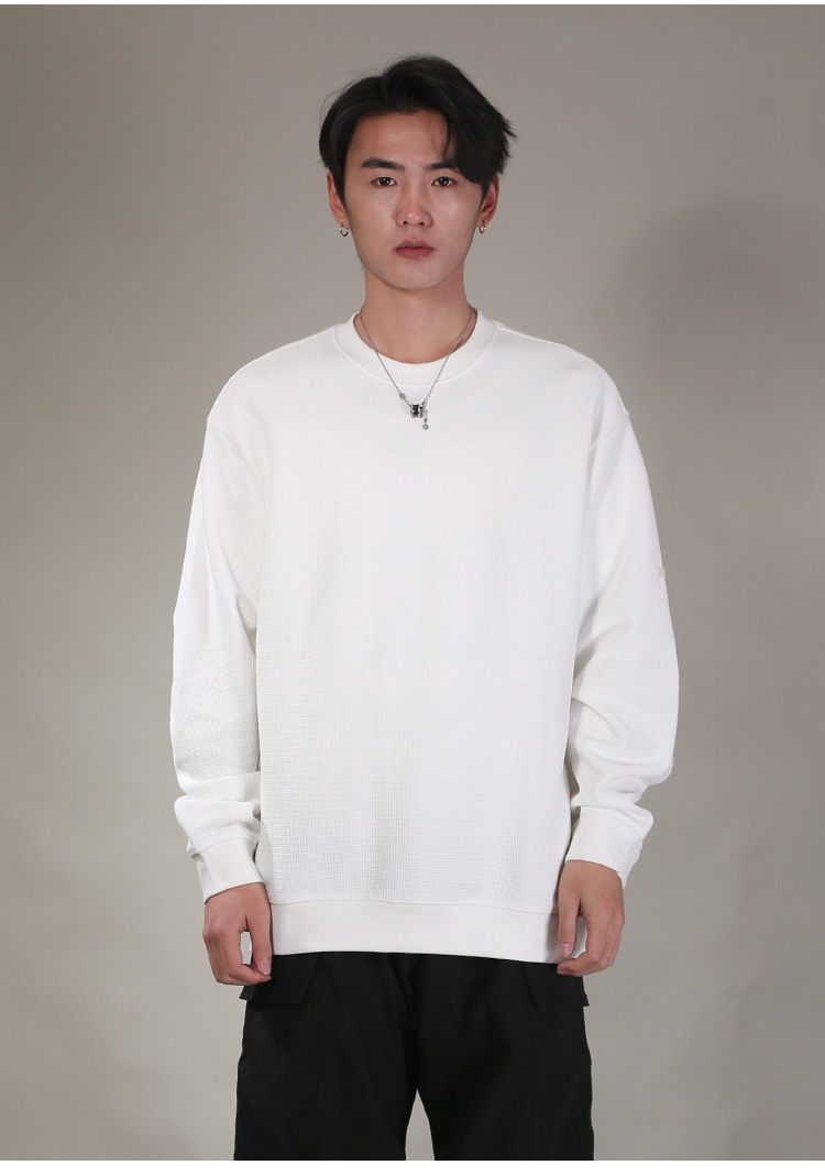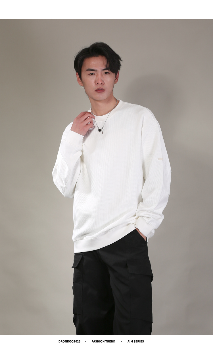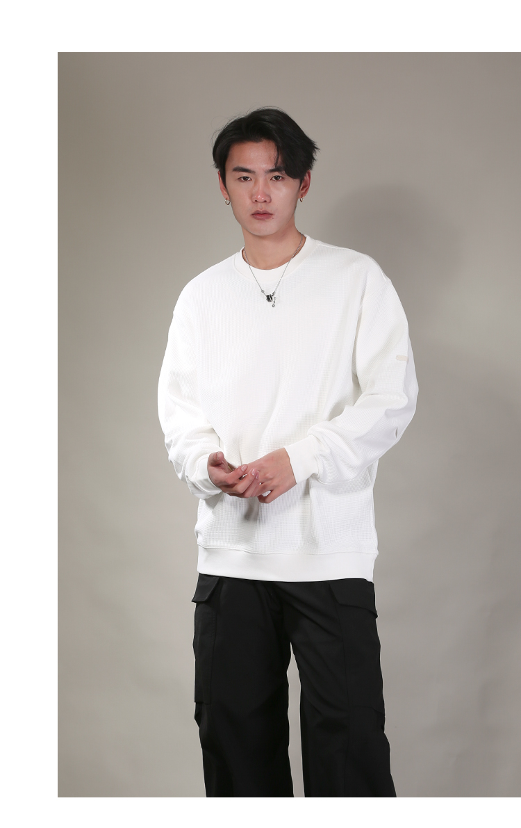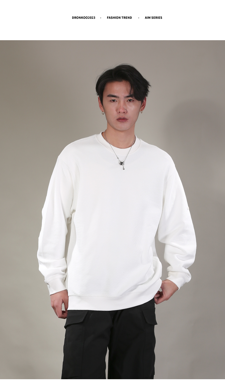 DRONKOO 2026 圆领左袖同色皮标华夫格肌理中厚卫衣