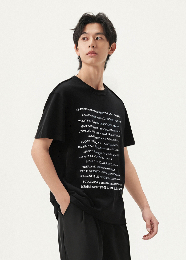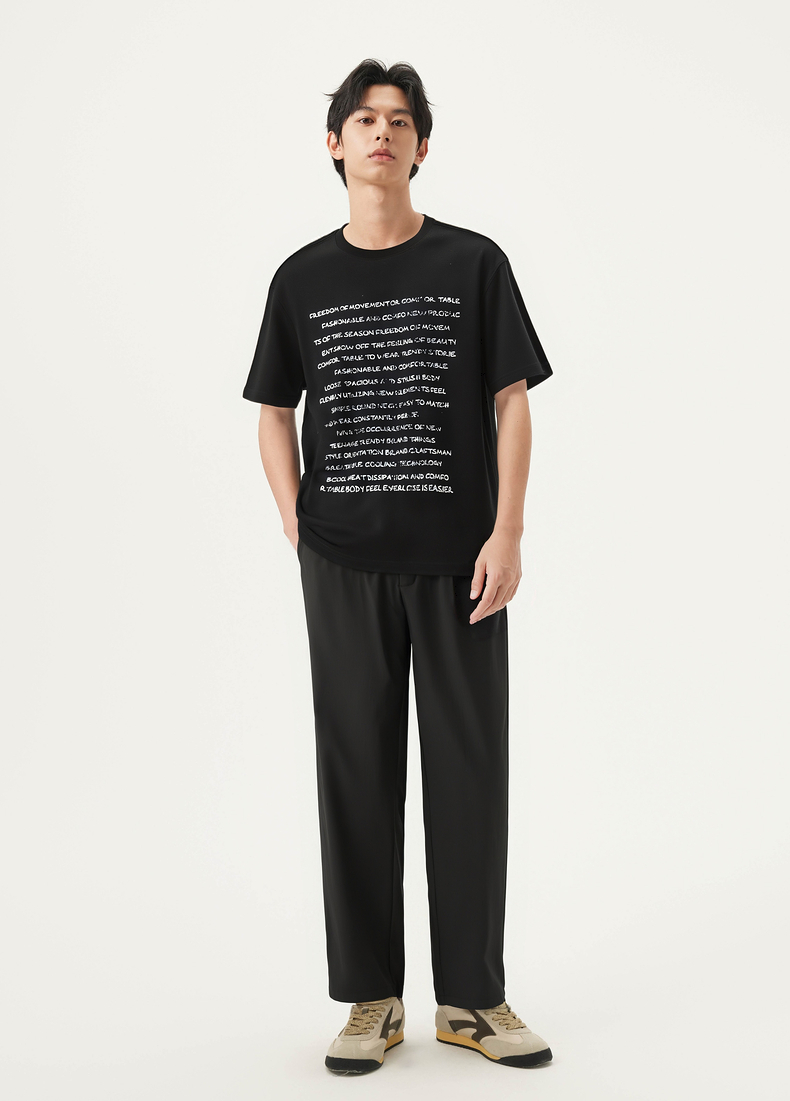 GXG男装 黑色圆领短袖T恤凉感舒适潮流休闲时尚 夏季热卖