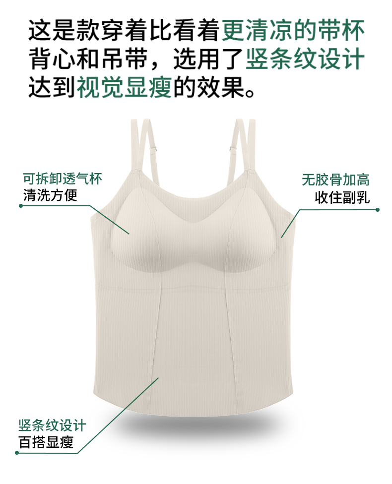 w2431#巨包容免穿文胸2合1竖条纹百搭无痕美背吊带背心 四季款【两件装需要自选颜色请联系客服备注】