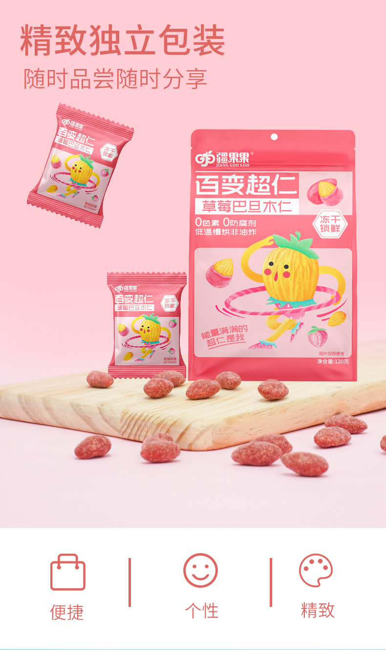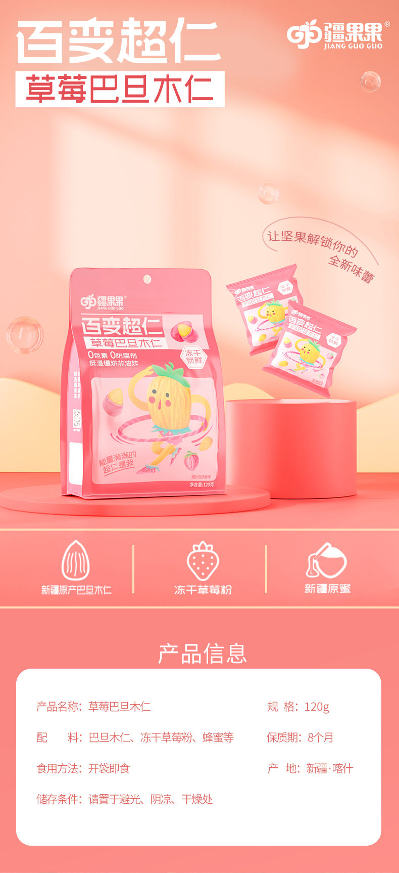 【严选】疆果果百变超仁草莓巴旦木仁120g/袋(10g*12小袋)(厂家直发))