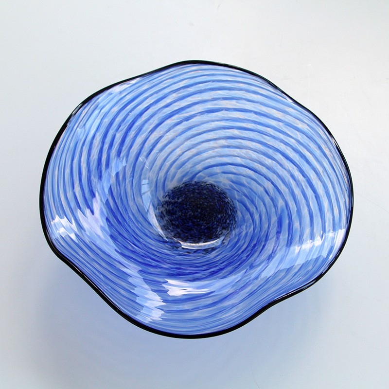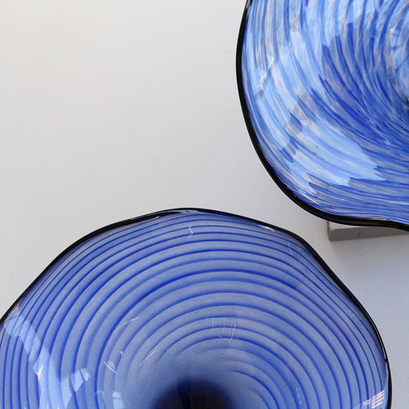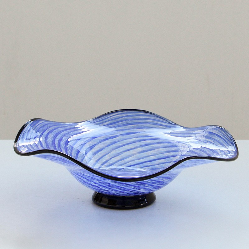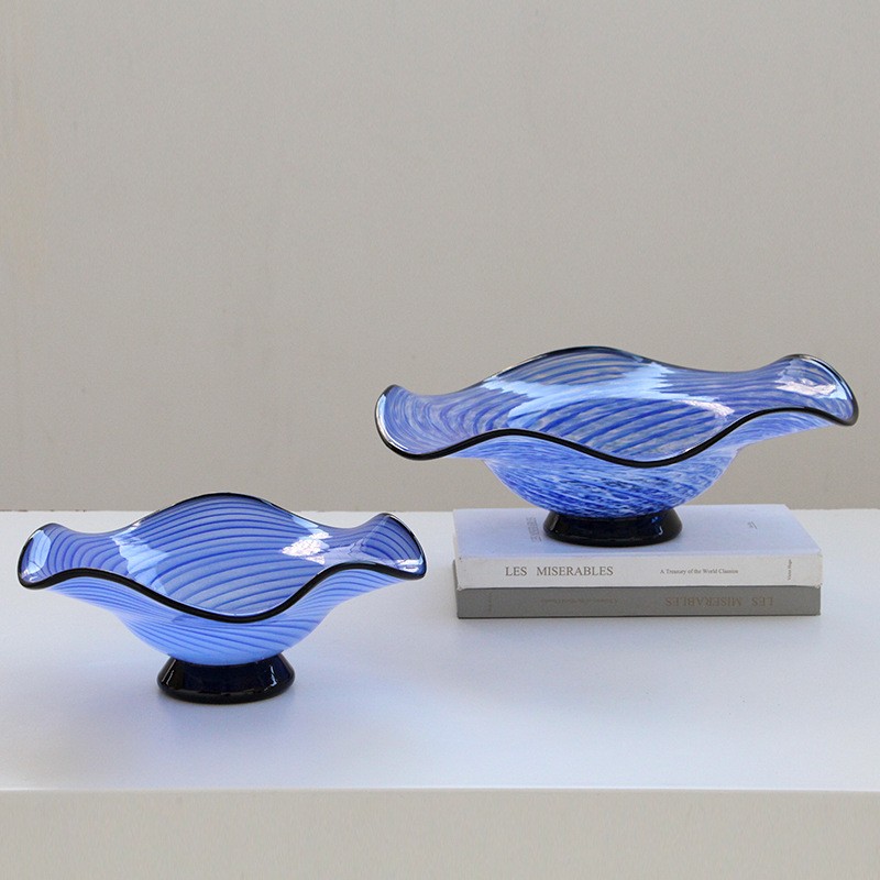 设计师严选简约现代蓝色条纹玻璃水果盘客厅茶几餐桌面创意收纳盘