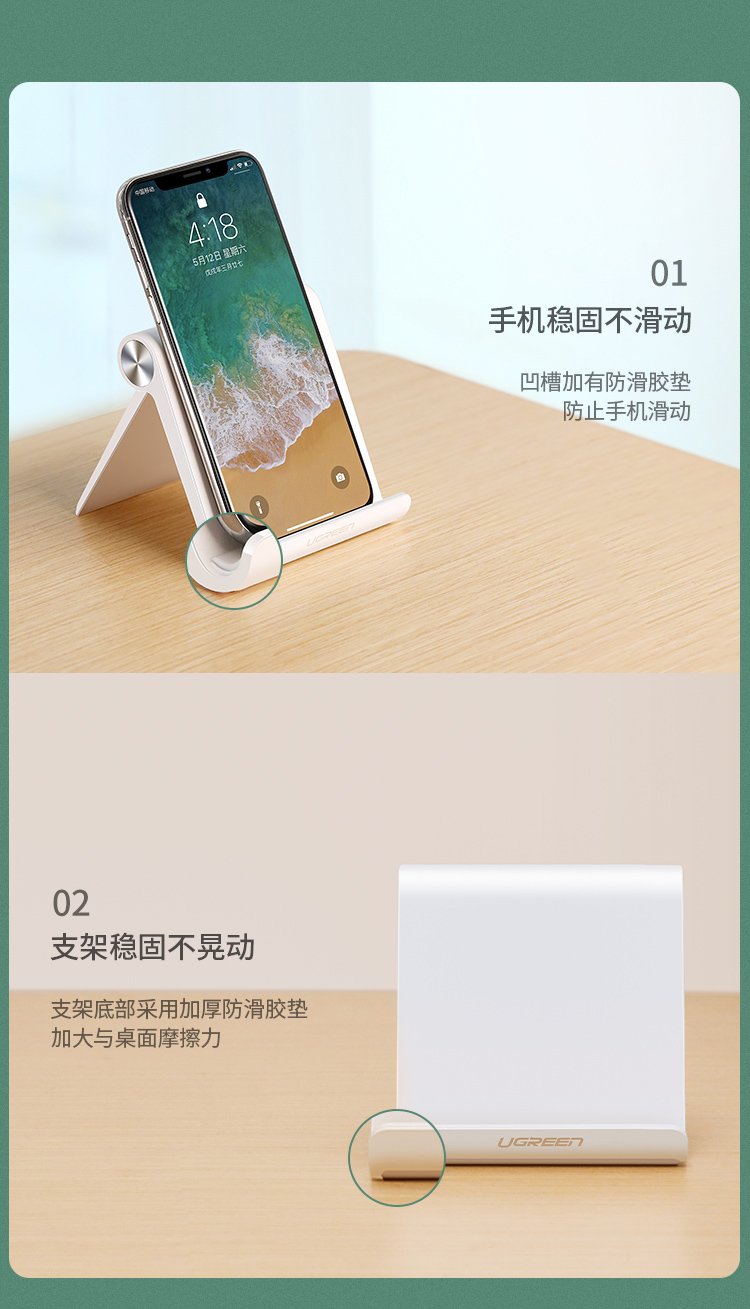 绿联 桌面手机支架 懒人ipad平板支撑架 网红直播手机座 折叠便携多功能调节夹子 通用苹果华为小米手机30285