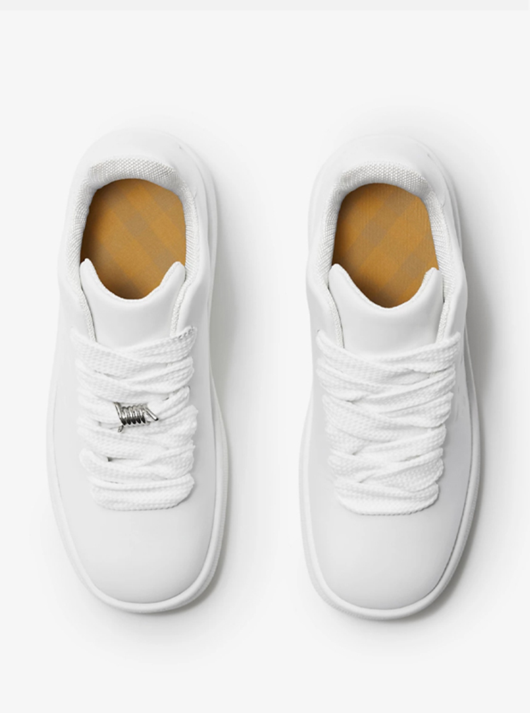 【二】BURBERRY 巴宝莉 女士马术骑士徽标压花皮革 Box 休闲运动鞋 白色 8083385 A1464