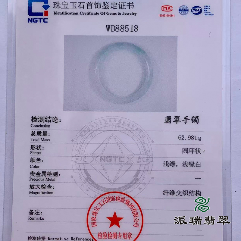 派瑞翡翠 翡翠手镯 糯种 浅绿